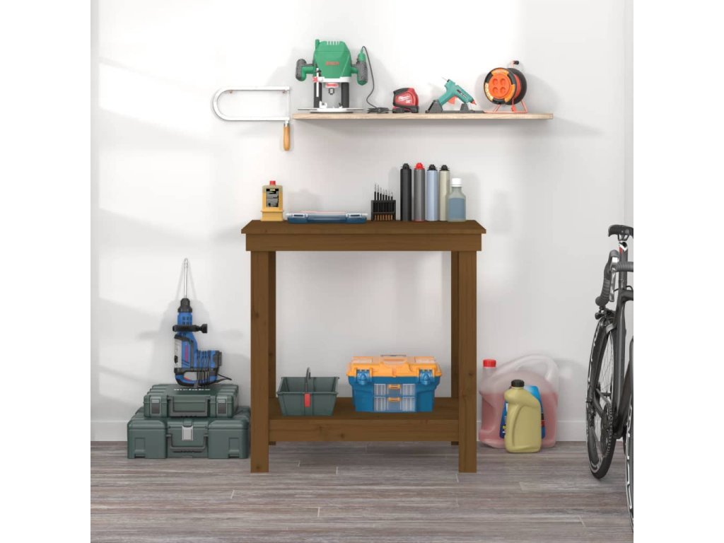 Táto drevená pracovná lavica predstavuje praktický doplnok do vašej garáže.