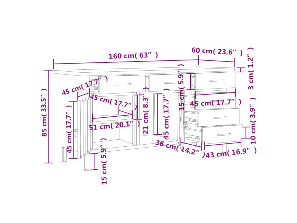 - Rozmery: 160 x 60 x 85 cm (D x Š x V)