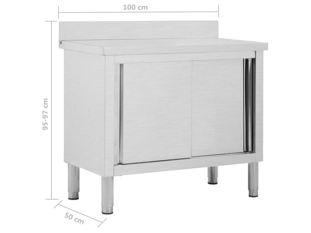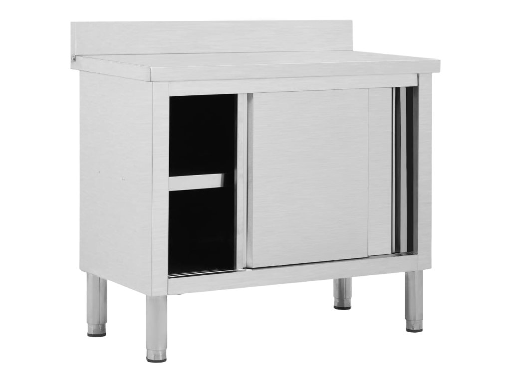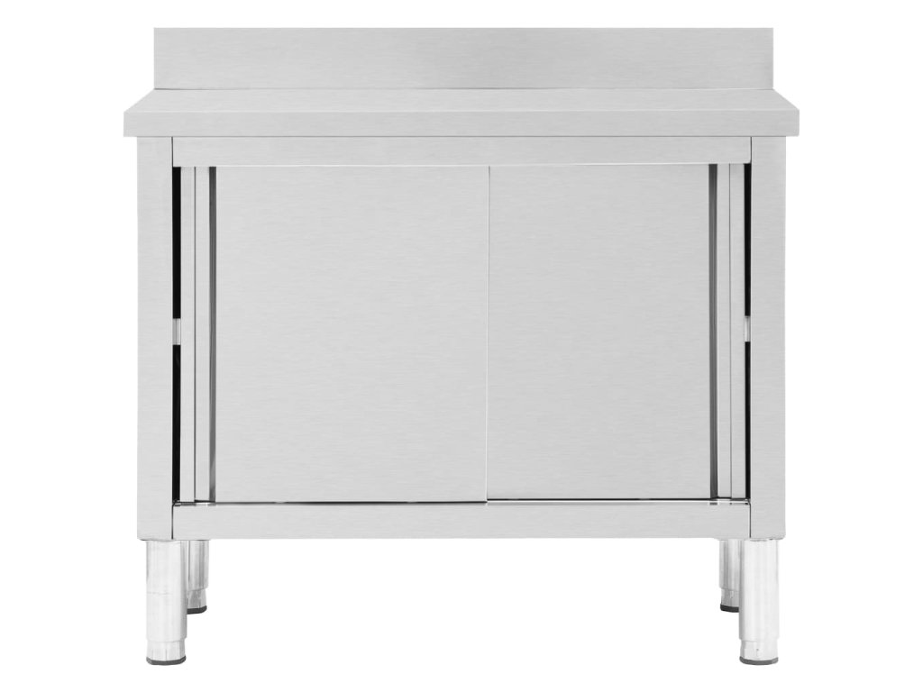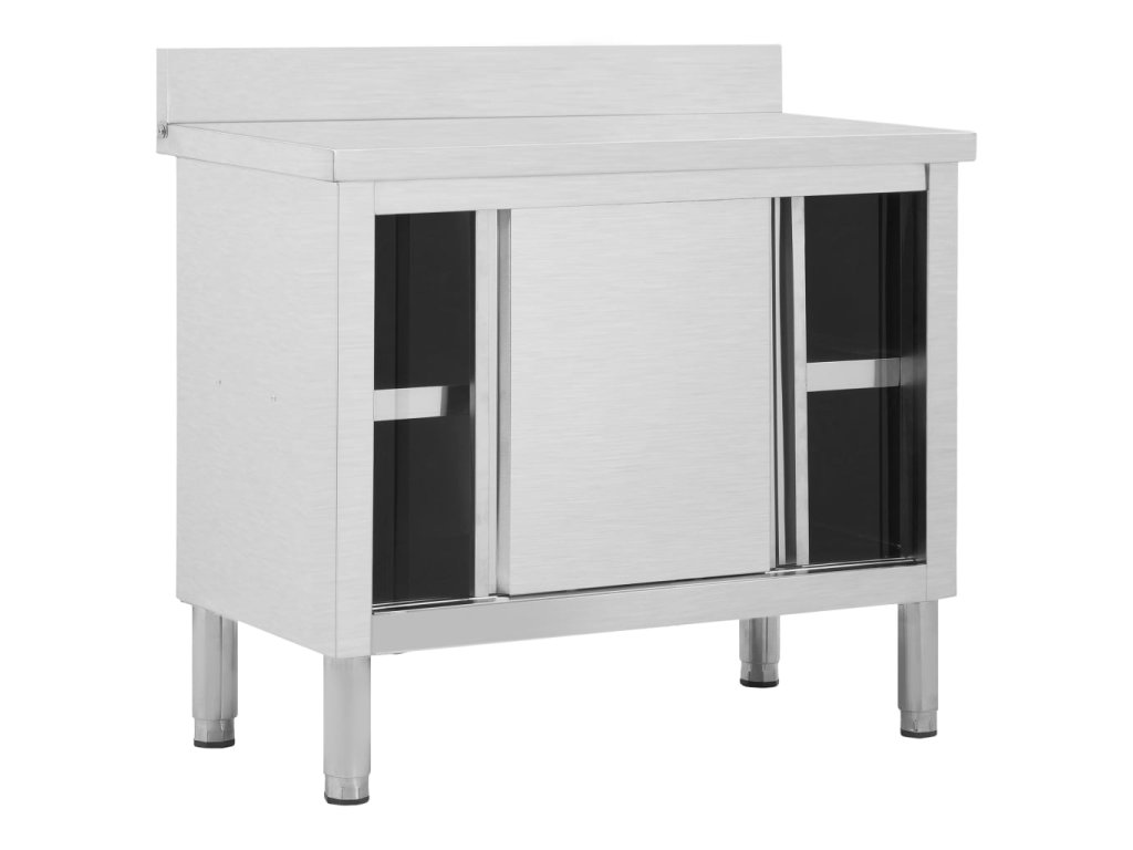 Kuchynská skrinka je vyrobená z nehrdzavejúcej ocele a je mimoriadne trvácna, stabilná a ľahko sa čistí, vďaka čomu je ideálna pre použitie tam, kde sa vyžaduje vysoký hygienický štandard. Vďaka priestrannému úložnému priestoru pod kuchynskou skrinkou bude vaša kuchyňa usporiadanejšia a čistejšia. Dizajn posuvných dverí navyše zaručuje pohodlný prístup ku všetkým potrebným ingredienciám. Montáž kuchynskej odkladacej skrinky je jednoduchá.