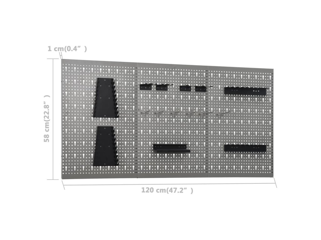 Tieto panely na nástroje sú vyrobené z pevnej ocele a dokážu uniesť váhu rôznych nástrojov, ako sú vrtáky, kliešte, skrutkovače a kľúče. Tieto panely sú perforované pre ľahké a bezpečné pripevnenie náradia. Tri nástenné panely sa dajú k sebe uchytiť pre vyššiu pevnosť. Je to ideálny doplnok pre vaše pracovné stoly a dielenské skrinky s praktickou šírkou 120 cm.