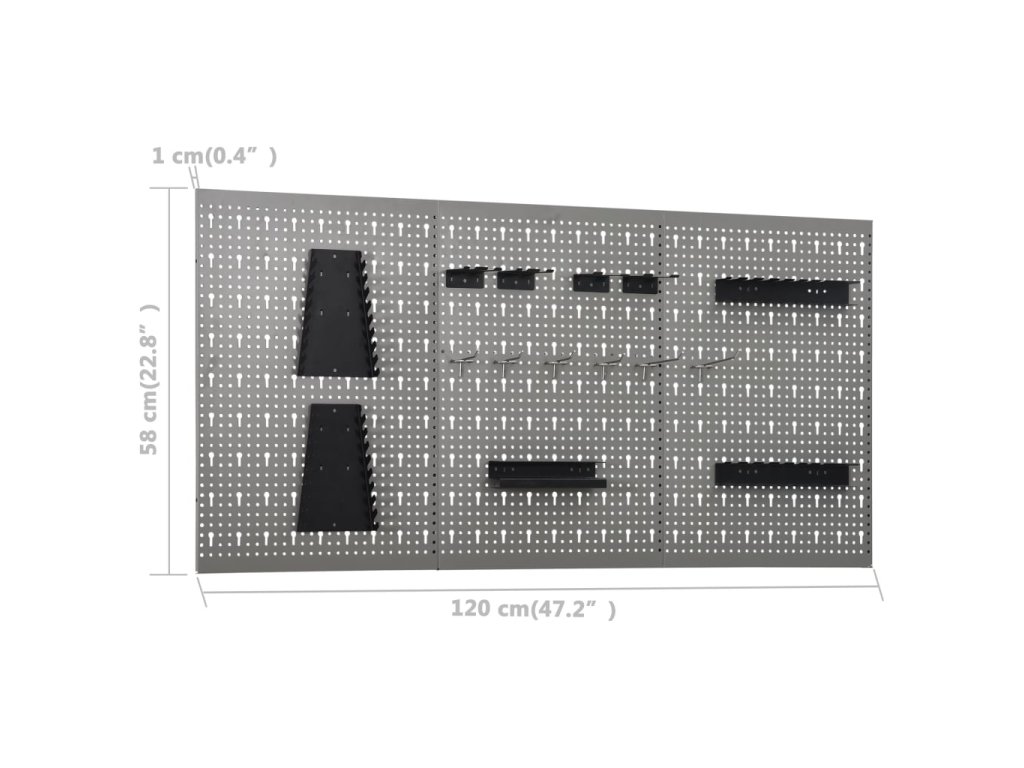 Tieto panely na nástroje sú vyrobené z pevnej ocele a dokážu uniesť váhu rôznych nástrojov, ako sú vrtáky, kliešte, skrutkovače a kľúče. Panely sú perforované pre ľahké a bezpečné pripevnenie náradia. Tri nástenné panely sa dajú k sebe uchytiť pre vyššiu pevnosť. Je to ideálny doplnok pre vaše pracovné stoly a dielenské skrinky s praktickou šírkou 120 cm.