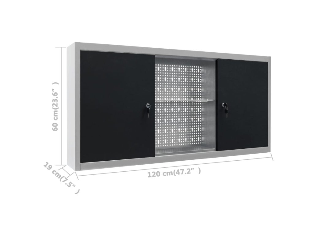 Táto skrinka na náradie obsahuje tri výškovo nastaviteľné police a perforovaný panel s otvormi, ktoré sa dajú použiť na zavesenie rôznych druhov nástrojov, ako sú kľúče, kliešte, kladivá atď. Skriňa na náradie, vybavená dvoma uzamykateľnými dvierkami (súčasťou balenia sú 2 kľúče pre každé dvere), je mimoriadne bezpečná. Je vyrobená z kovu s extra silným náterom odolným voči poškriabaniu, vďaka čomu je odolná a dobre sa čistí. Tento produkt si vyžaduje montáž.