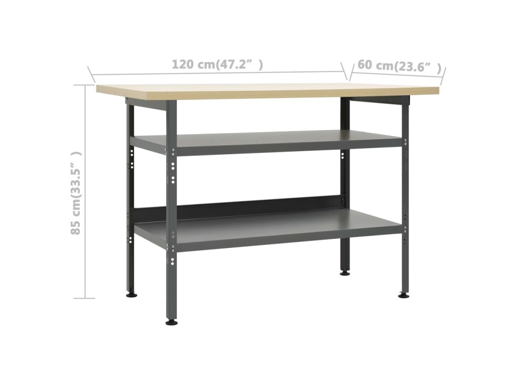 Pevný pracovný stôl vyniká svojím veľkorysým úložným priestorom a nosnosťou 300 kg. Tento pracovný stôl má 2 veľké police, do ktorých môžete odložiť vŕtačky, bubnové predlžovačky, brúsky a iné náradie. Okrem toho sú nožičky výškovo nastaviteľné. Táto pracovná stanica je vyrobená z prvotriednej ocele a spracovaného dreva, vďaka čomu je mimoriadne pevná, odolná a ľahko sa čistí. Montáž je jednoduchá.