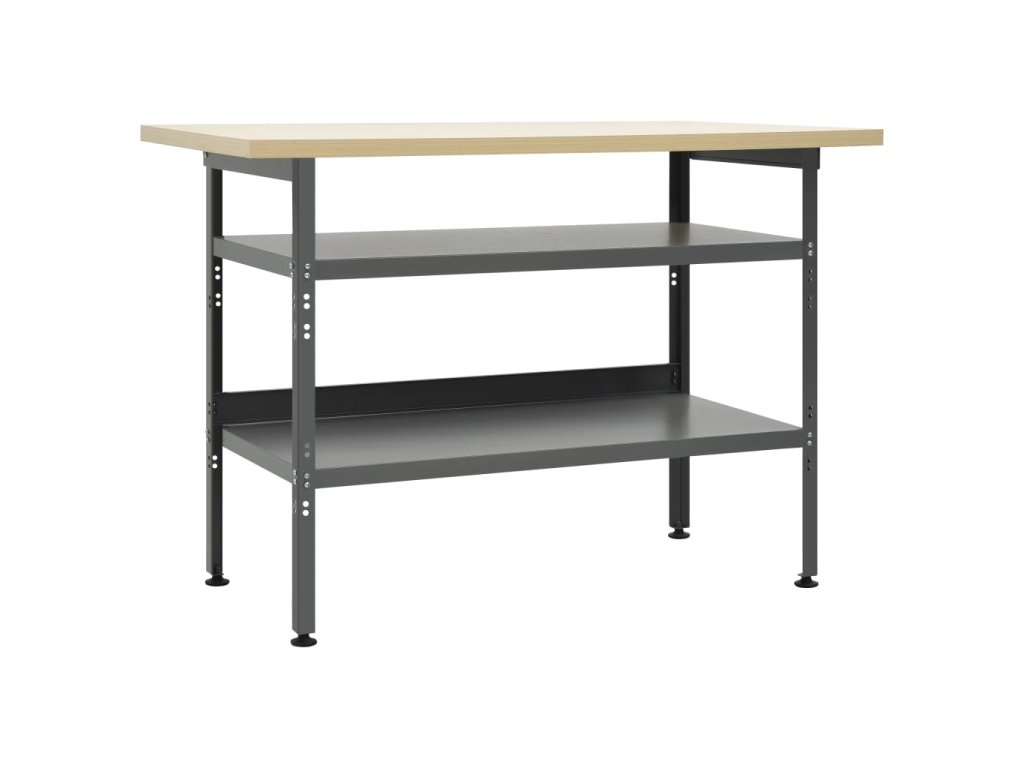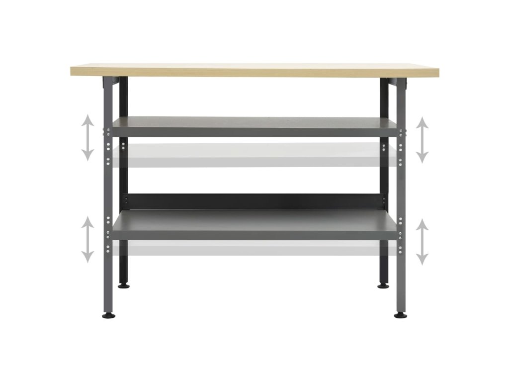 Nožičky sú navyše výškovo nastaviteľné. Pracovný stôl preto môžete umiestniť naozaj kamkoľvek a bude stáť pevne aj na nerovnom povrchu. Táto pracovná stanica je vyrobená z prvotriednej ocele a kompozitného dreva, vďaka čomu je mimoriadne pevná, trvácna a ľahko sa čistí. Montáž je jednoduchá. Pracovný stôl predstavuje skvelého pomocníka, či už potrebujete dokončiť domáce opravy alebo sa venovať svojmu kutilskému hobby!