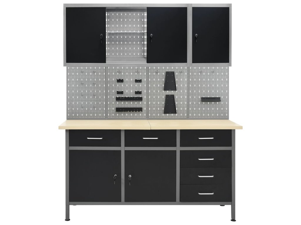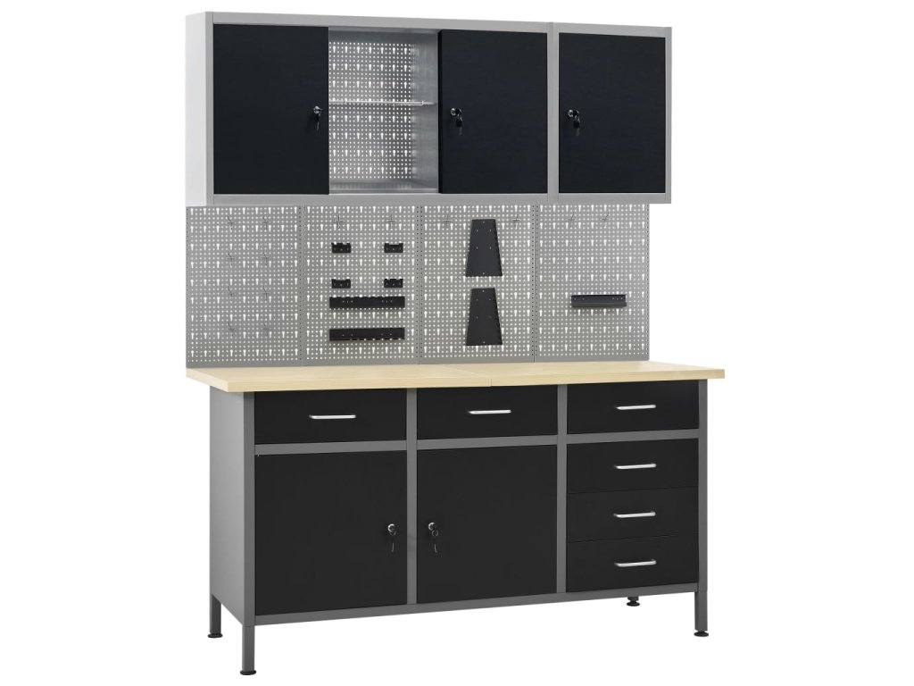 Táto sada je kombináciou 1 pracovného stola, 4 nástenných panelov a 2 nástenných skriniek, ktoré budú praktickým riešením pre vašu dielňu alebo garáž.