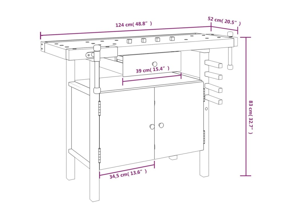 Tento drevený pracovný stôl je vďaka pevnému a robustnému rámu ideálny do každej garáže, dielne alebo kôlne.