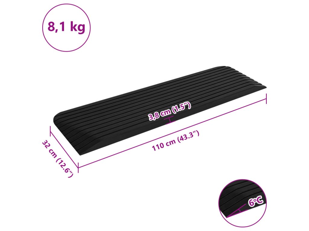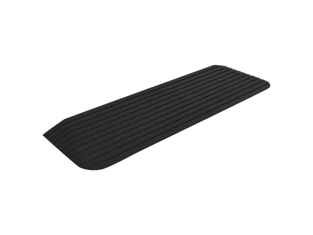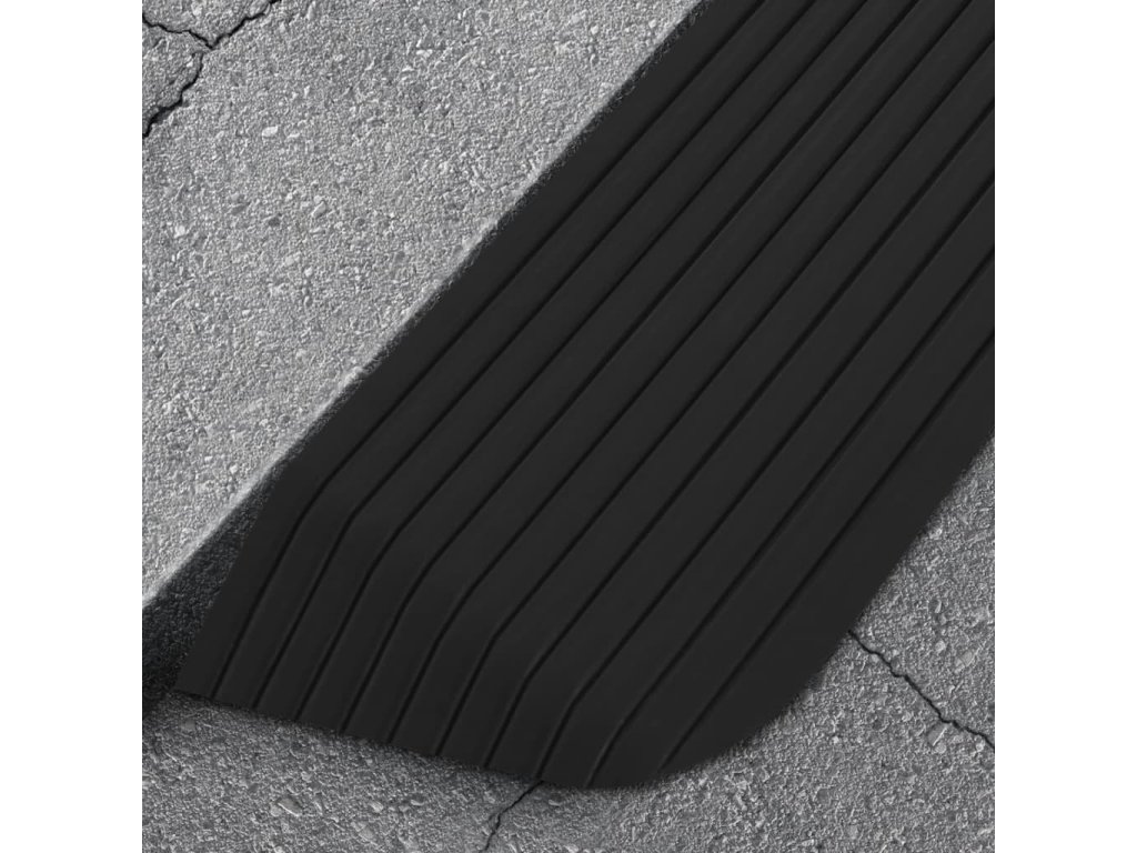 Nájazdová rampa je vyrobená z pevnej gumy, vďaka čomu je ľahká, pevná a odolná pre dlhodobé používanie. Drsný povrch má nekĺzavú štruktúru, aby sa zabránilo pošmyknutiu, alebo prekĺzavaniu pri pohybe do kopca.