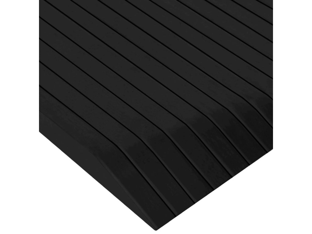 Nájazdová rampa je vyrobená z pevnej gumy, vďaka čomu je ľahká, pevná a odolná pre dlhodobé používanie. Drsný povrch má nekĺzavú štruktúru, aby sa zabránilo pošmyknutiu, alebo prekĺzavaniu pri pohybe do kopca.