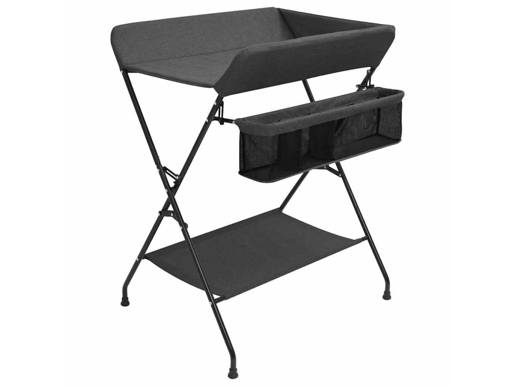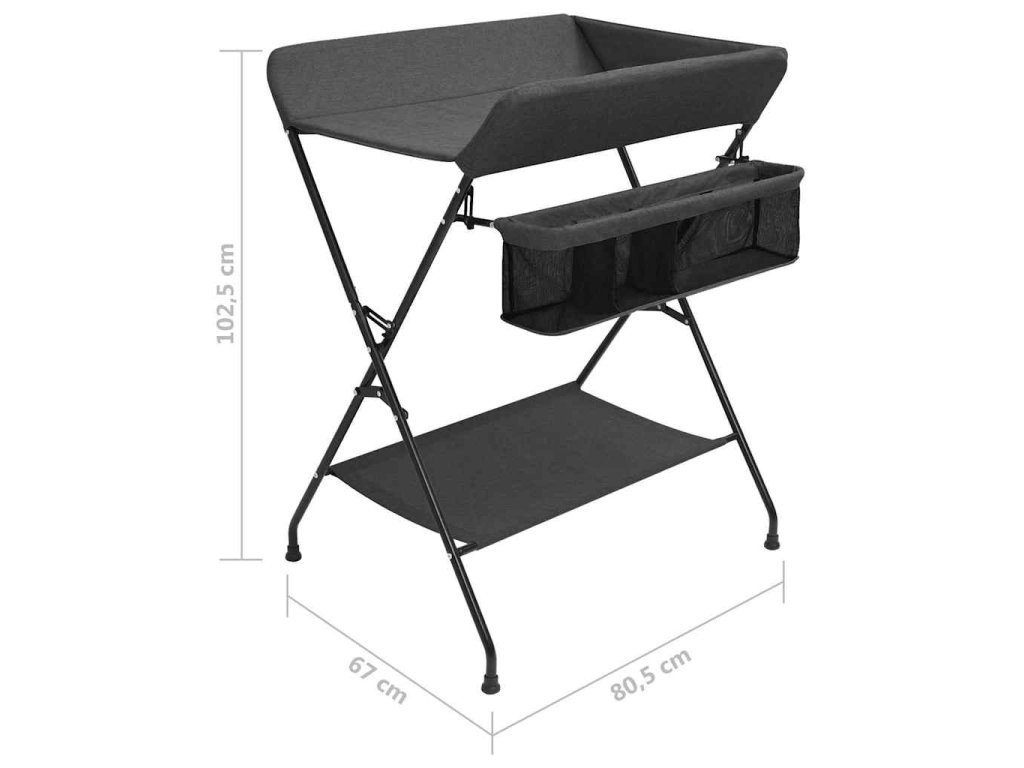 Tento stolík na prebaľovanie plienok je robustný a odolný. Bočné steny zabezpečujú, aby sa dieťa neskotúľalo. Prebaľovací pult je vybavený bočnými priehradkami na uskladnenie a ľahký prístup k detským potrebám. Po prebalení ho môžete zložiť a uložiť, aby ste ušetrili miesto, takže prebaľovací pult je ideálny na cesty alebo na použitie doma. V spodnej časti sa nachádza aj polička na uloženie vecí, ako je detský olej, náhradné plienky atď.
