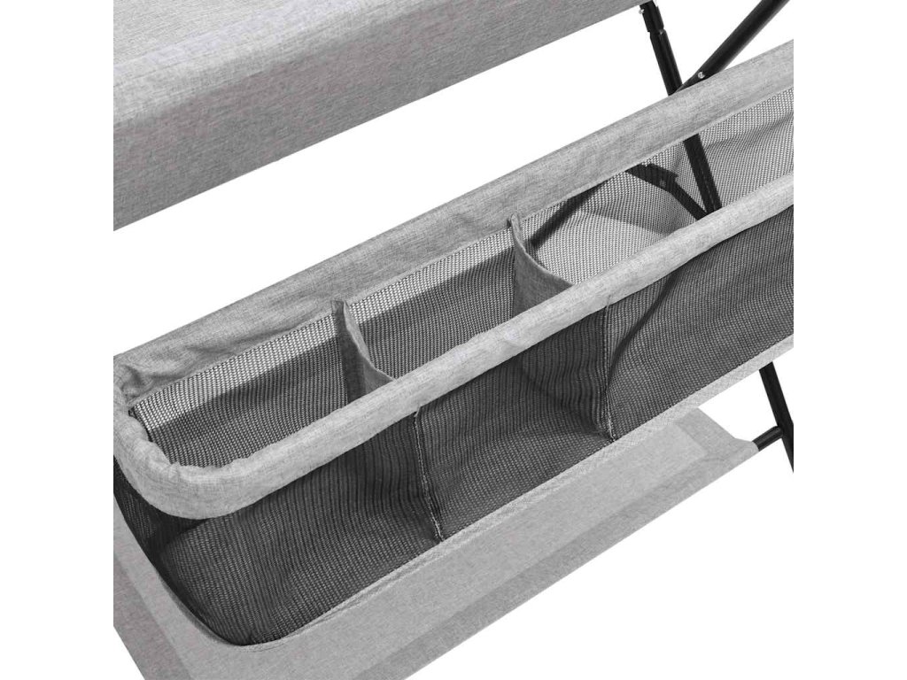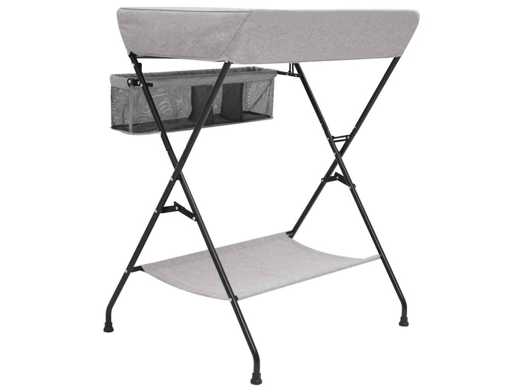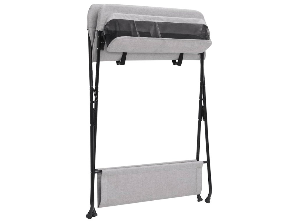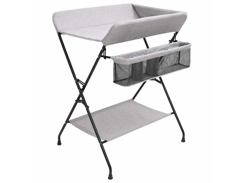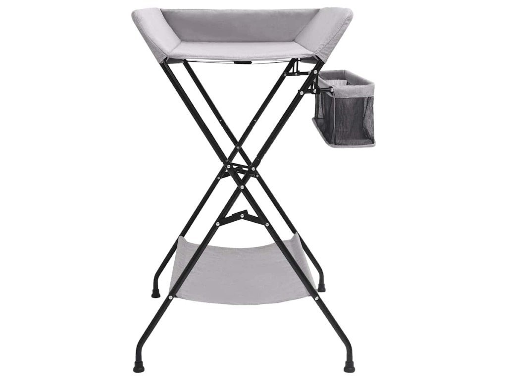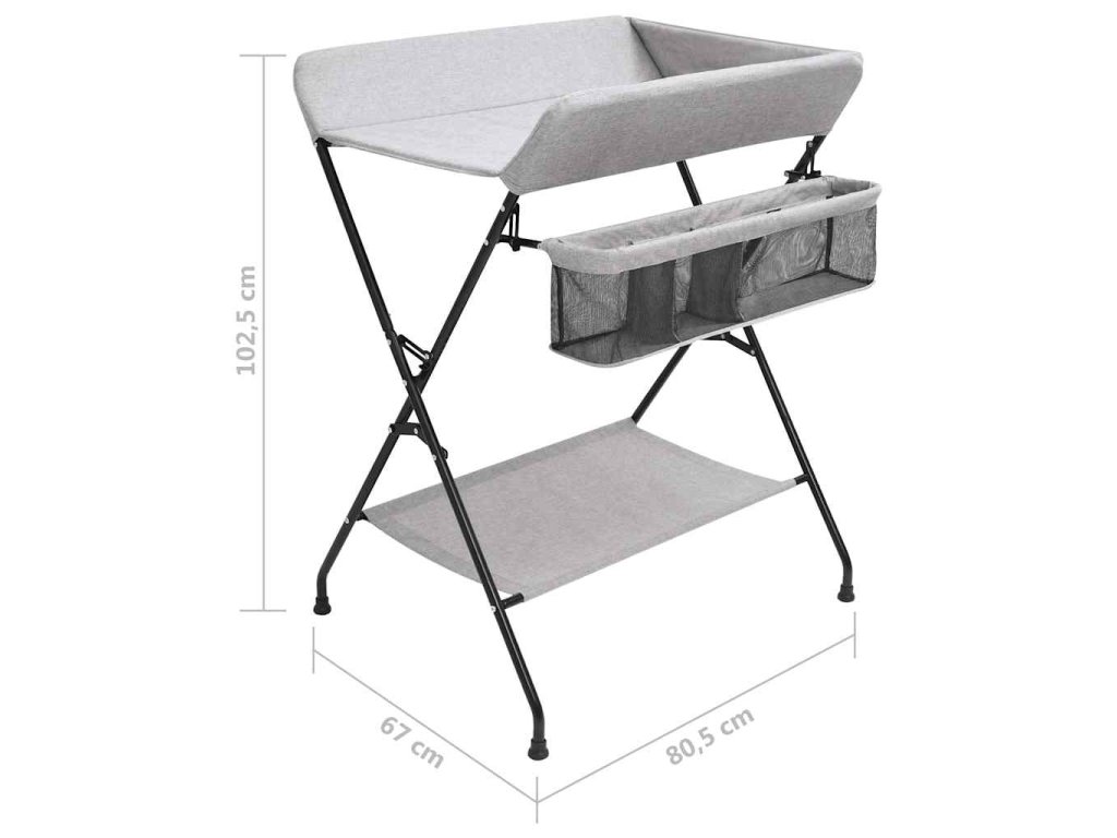 Tento stolík na prebaľovanie plienok je robustný a odolný. Bočné steny zabezpečujú, aby sa dieťa neskotúľalo. Prebaľovací pult je vybavený bočnými priehradkami na uskladnenie a ľahký prístup k detským potrebám. Po prebalení ho môžete zložiť a uložiť, aby ste ušetrili miesto, takže prebaľovací pult je ideálny na cesty alebo na použitie doma. V spodnej časti sa nachádza aj polička na uloženie vecí, ako je detský olej, náhradné plienky atď.