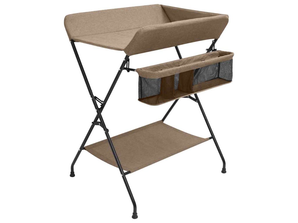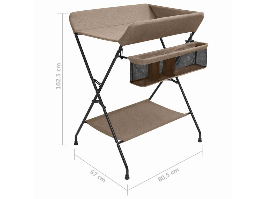 Tento stolík na prebaľovanie plienok je robustný a odolný. Bočné steny zabezpečujú, aby sa dieťa neskotúľalo. Prebaľovací pult je vybavený bočnými priehradkami na uskladnenie a ľahký prístup k detským potrebám. Po prebalení ho môžete zložiť a uložiť, aby ste ušetrili miesto, takže prebaľovací pult je ideálny na cesty alebo na použitie doma. V spodnej časti sa nachádza aj polička na uloženie vecí, ako je detský olej, náhradné plienky atď.