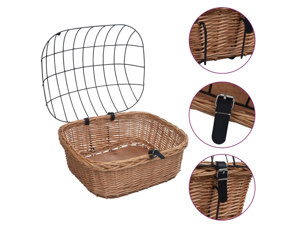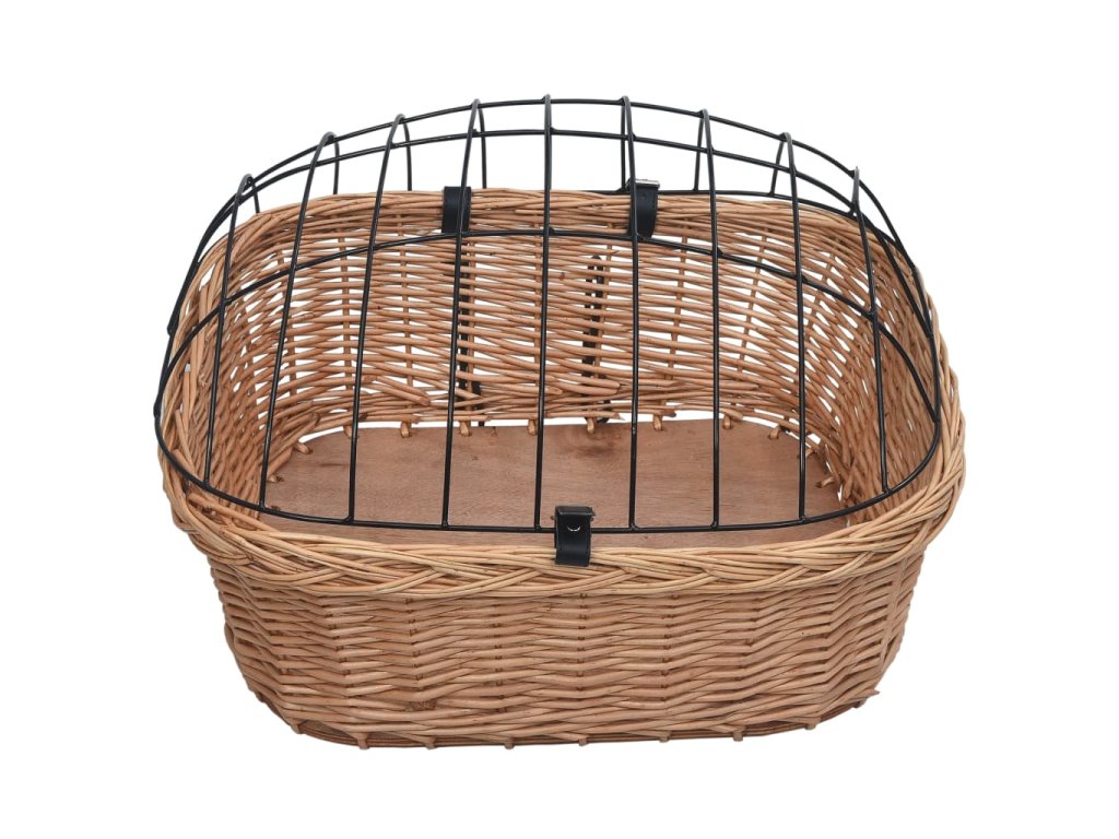 Kôš je vyrobený z prírodného vŕbového prútia, vďaka čomu je odolný voči roztrhnutiu a bude vám slúžiť naozaj dlho, nech už si ho vaši chlpatí kamaráti škrabú, koľko chcú. Prírodný drevený materiál neobsahuje žiadne chemikálie. Robustný kryt z masívneho železa udrží potraviny alebo domácich miláčikov počas vašich výletov na svojom mieste.