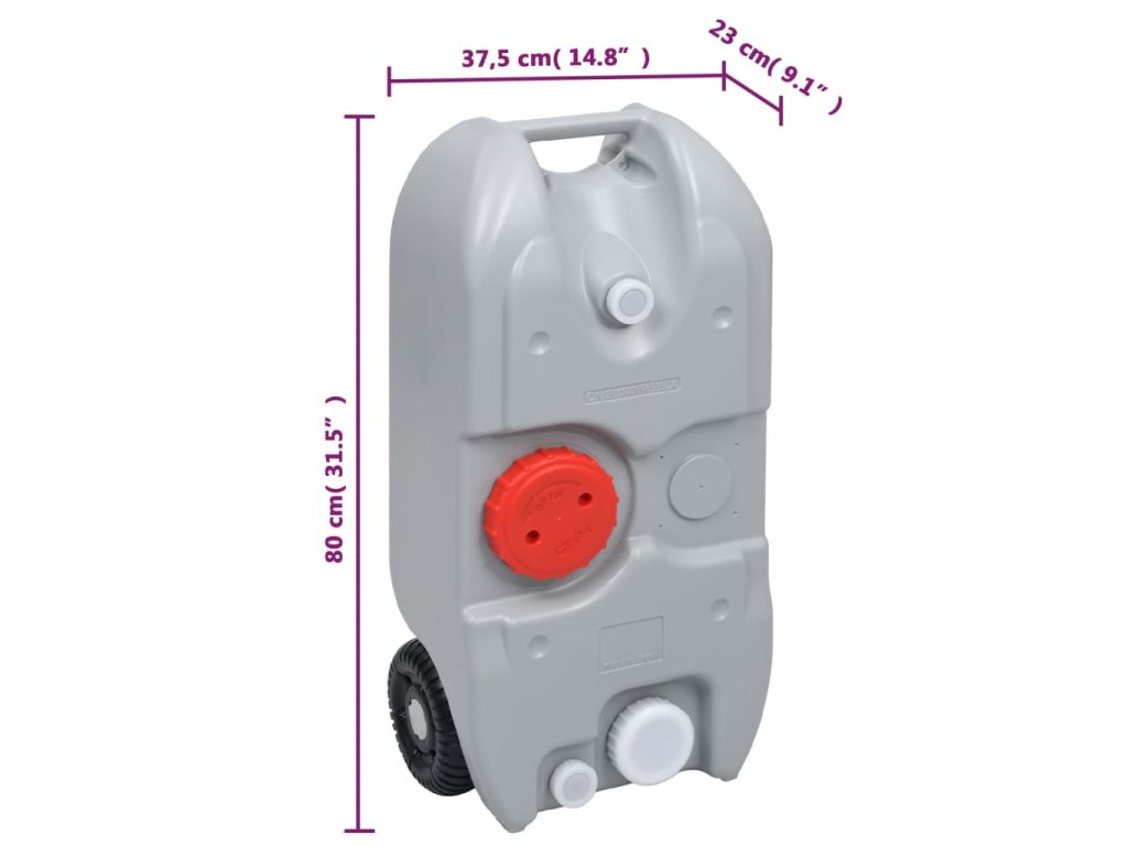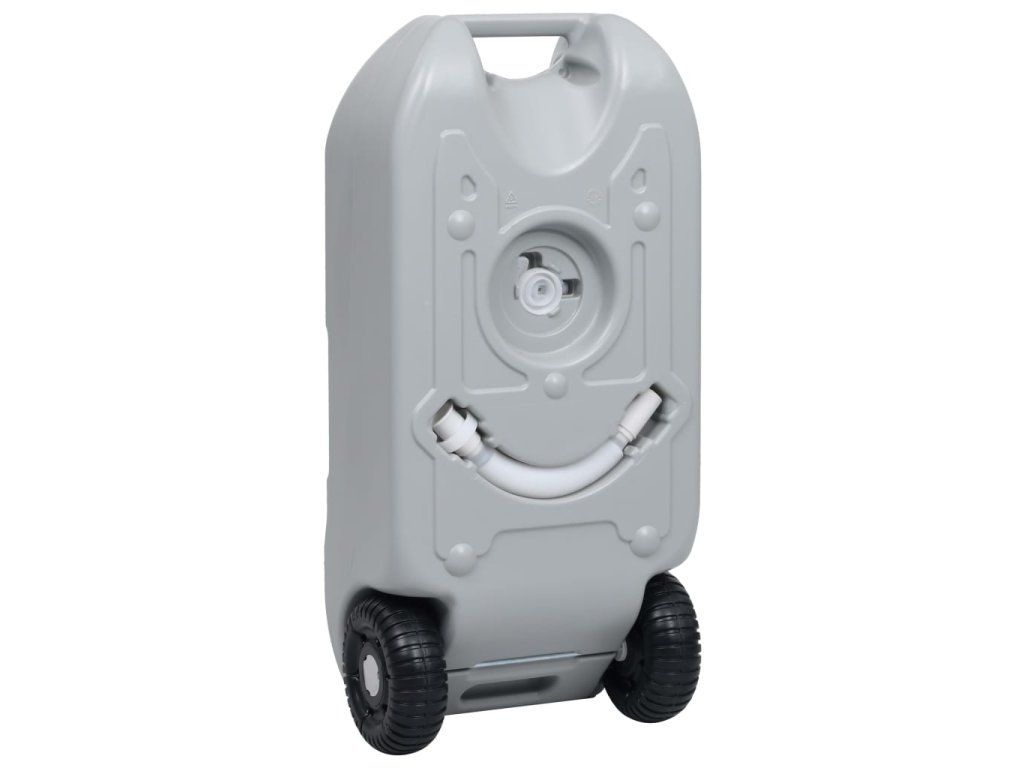 - Nádrž na vodu s kolieskami: Nádrž na vodu ponúka dostatočnú zásobu vody pre núdzové použitie. Niekoľko vodných výstupov umožňuje rýchle prúdenie vody dovnútra a von. Horná rukoväť a kolieska uľahčujú prepravu.