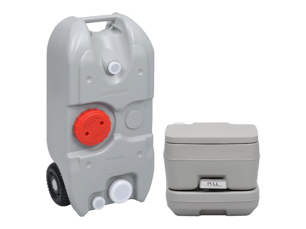 Táto prenosná kempingová súprava obsahuje toaletu s nádržou. Súprava je vďaka svojmu ľahkému a kompaktnému dizajnu ideálna na kempovanie, výlety na obytných automobiloch, pre staveniská, stravovacie zariadenia, stánky atď.