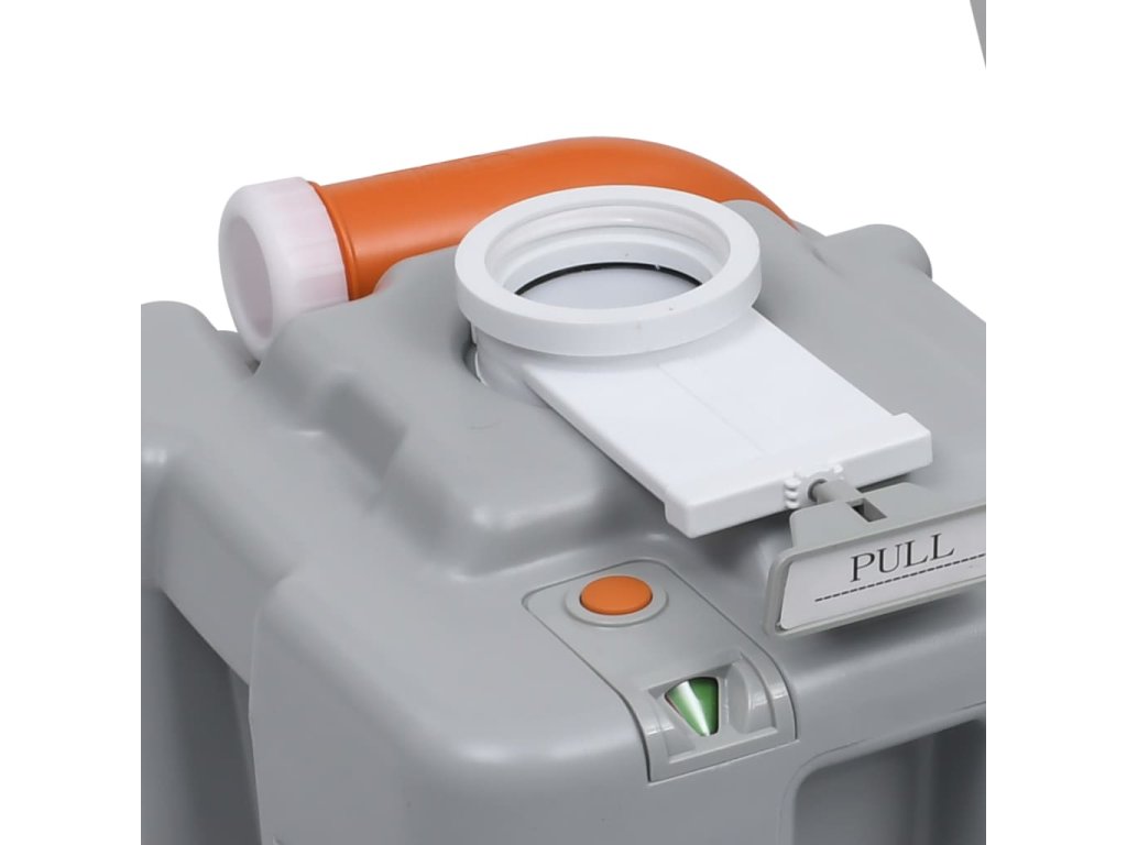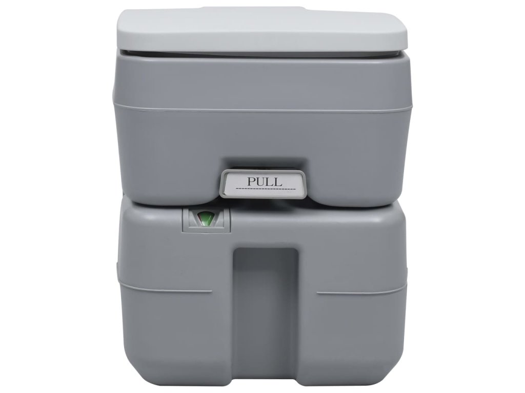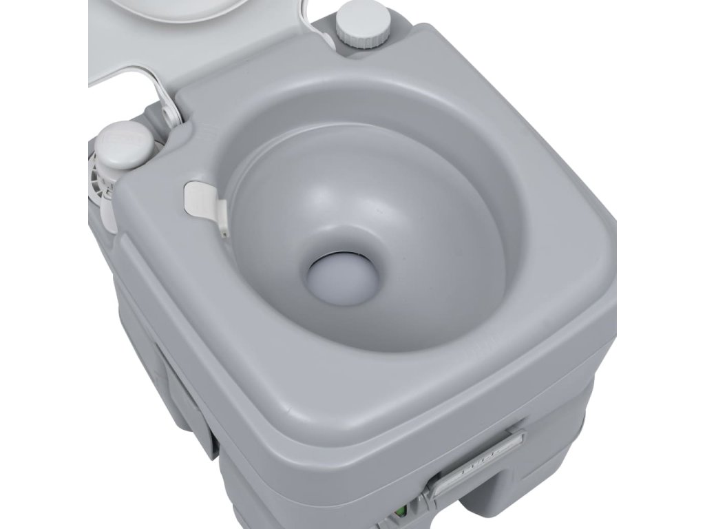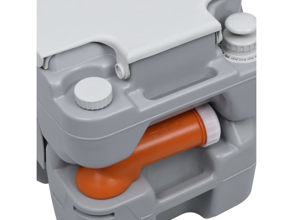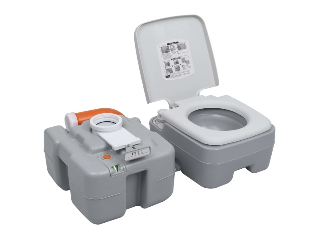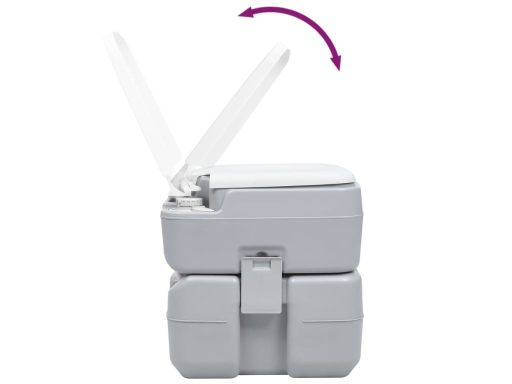 Kempingová toaleta je vyrobená z pevného polyetylénového PP materiálu s vysokou hustotou, vďaka čomu je pevná. Unesie hmotnosť až 200 kg. WC pre karavany je vybavené moderným piestovým čerpadlom, ktoré splachuje omnoho čistejšie ako v prípade mechového čerpadla. Jeho 3-cestné splachovanie typu T uľahčuje odstraňovanie odpadu, zatiaľ čo otočná výlevka umožňuje rýchle vyprázdnenie bez rozliatia. Kempingová toaleta má 10-litrový zásobník na čerstvú vodu, ktorý vám umožní najmenej 50 spláchnutí. Bočné západky uľahčujú oddelenie alebo upevnenie oboch nádrží. Posuvný ventil pomáha chrániť pred únikmi a zápachu. Prenosná toaleta je naviac navrhnutá s indikátorom hladiny, ktorý ukazuje množstvo odpadu vnútri. Naša toaleta sa ľahko prenáša a má ľahký a kompaktný dizajn.
