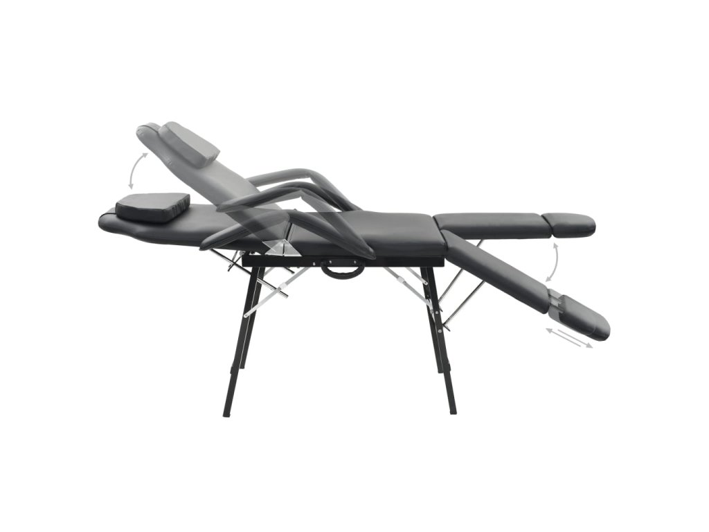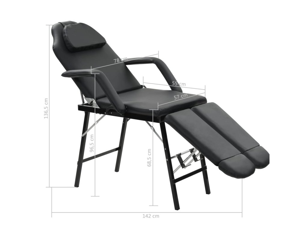 Kozmetické kreslo je čalúnené mäkkou kožou, ktorá je pohodlná a odolná. Kreslo sa jednoducho čistí a je odolné voči ošetrovacím krémom alebo masážnym olejom. Vďaka oceľovej konštrukcii a drevenému rámu je kreslo pevné a trvácne. Operadlo a 2 samostatné opierky nôh sa dajú jednoducho sklápať v maximálnom uhle 45° a tým prispievajú k optimálnemu pohodliu pri sedení alebo ležaní. Vankúš na hlavu a opierky na ruky sú odnímateľné. Kreslo sa dodáva s prenosnou taškou, takže sa dá jednoducho vziať na cesty.