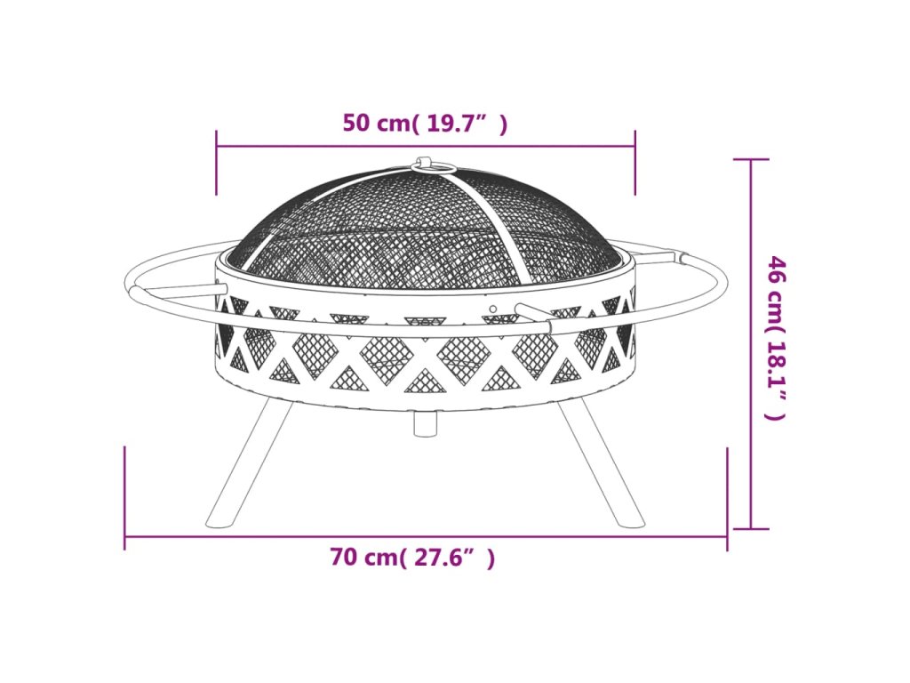 - Bezpečnostný doplnok: Sieťovaný kryt vám umožní sledovať horiaci oheň a zároveň vás ochráni pred poletujúcimi iskrami a popolom, pretože ohnisko bezpečne zakryje. Priložený kovový kutáč môžete použiť aj na odstránenie sieťového krytu a upravenie polienok.