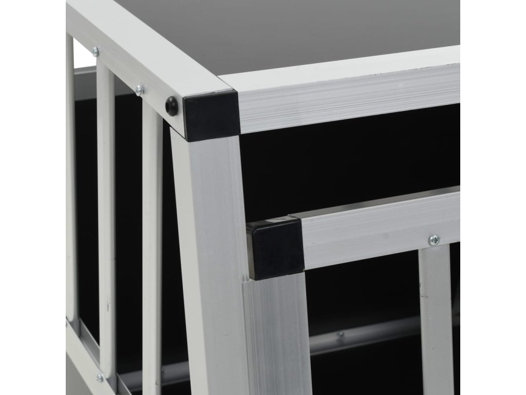 Táto prepravka pre psa je vyrobená z hliníka a MDF, ktoré je odolné a jednoducho sa udržiava. Naša prepravka je vybavená plastovými rohovými spojmi, aby sa zabránilo zraneniu vášho chlpatého priateľa. Inovatívna konštrukcia zabezpečuje, že váš pes môže sledovať okolie a bude mať dostatok čerstvého vzduchu. Jednoduchý dizajn dverí umožňuje ľahké vchádzanie aj vychádzanie. Naša prepravka je ľahká a dobre sa prepravuje vo vašom aute. Tento výrobok sa dá jednoducho zostaviť.