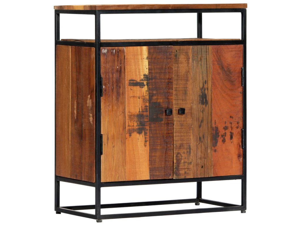 Komoda je vyrobená z mangového a recyklovaného masívu, ktorý pochádza z trámov, podláh a nosníkov zo starých zbúraných stavieb a pozostáva z rôznych typov dreva, ako napríklad borovicového, tíkového, bukového, dubového, cédrového, mangového či akáciového dreva. Recyklované drevo sa preto vyznačuje vlastnosťami týchto typov dreva. Recyklované drevo je staré, zvetrané a usušené, a preto sa nezmršťuje ani neohýba. Každý krok výrobného procesu sa vykonáva s najväčšou starostlivosťou, či už je to leštenie alebo lakovanie. Vďaka vynikajúcemu remeselnému opracovaniu a krásnej textúre dreva je každý kus nábytku výnimočný a trochu odlišný od ostatných. Príručná skrinka navyše obsahuje 2 dvierka a 1 poličku, ktoré poskytujú ideálne miesto na odkladanie menších predmetov, aby ste ich mali vždy poruke. Oceľový rám s práškovou povrchovou úpravou dodáva skrinke potrebnú pevnosť a stabilitu. Príručná skrinka sa jednoducho montuje.