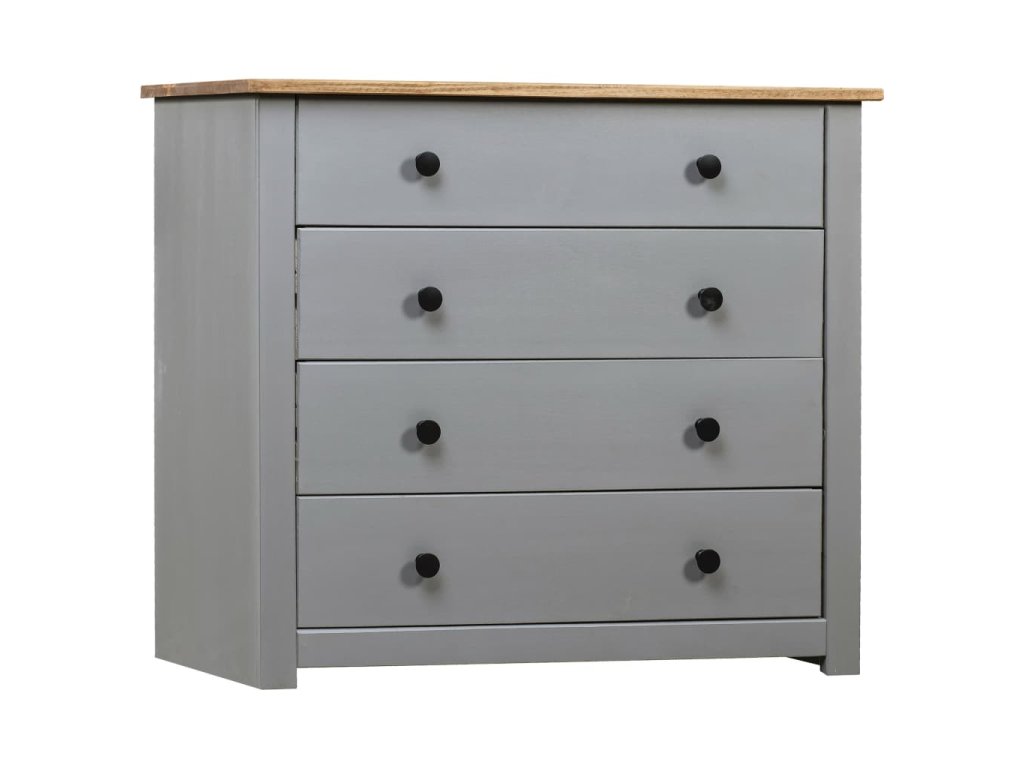 Zásuvková Panama skrinka, vyrobená z masívneho borovicového dreva, je mimoriadne trvácna a pevná. Komoda má 4 zásuvky, ktoré poskytujú množstvo úložného priestoru. Pevná vrchná doska je ako stvorená na vystavenie ozdobných predmetov, foto rámikov alebo kvetov v kvetináči. Dá sa ľahko čistiť vlhkou handričkou. Táto príručná skrinka sa jednoducho montuje.