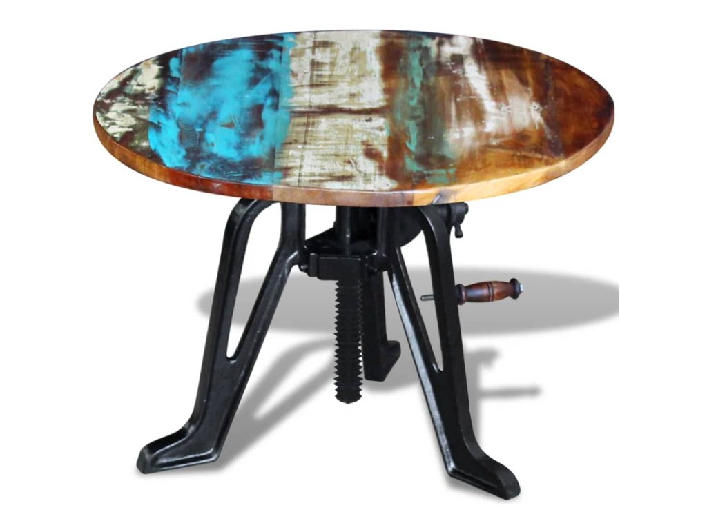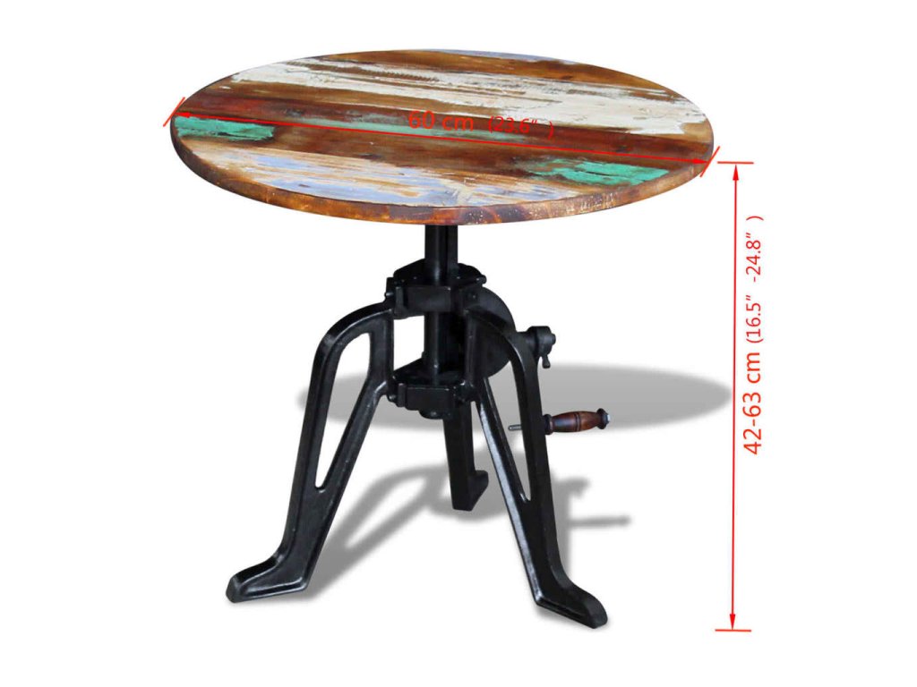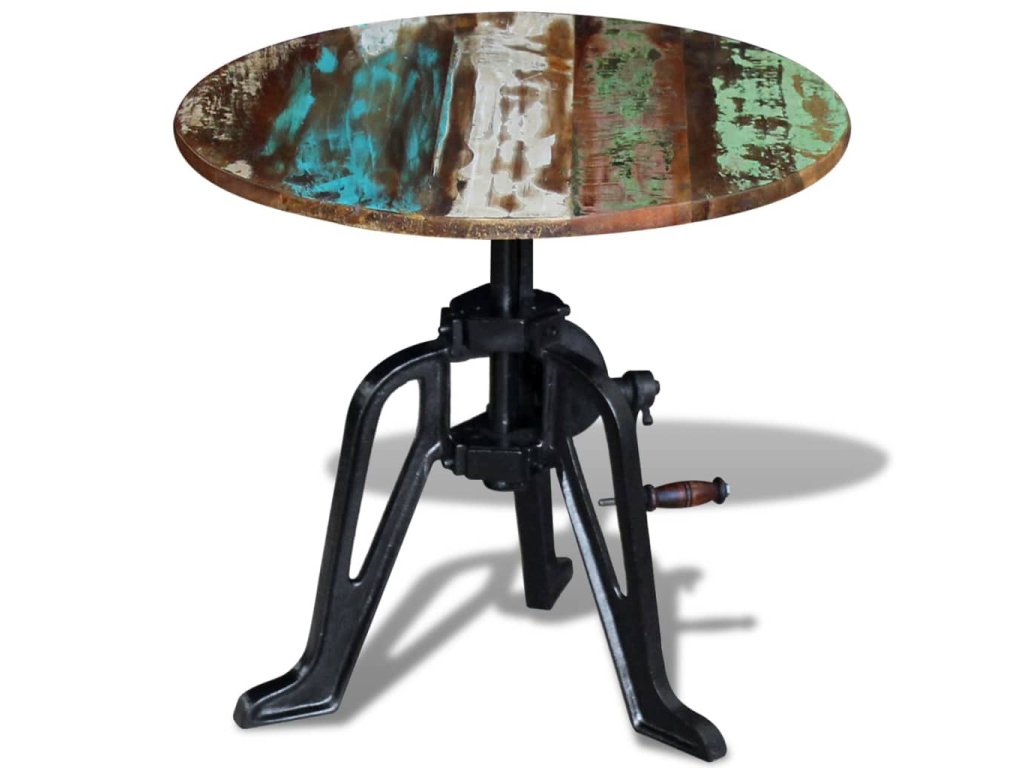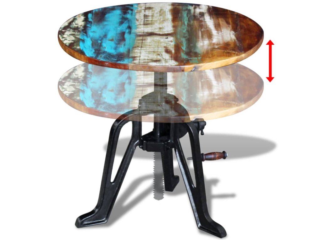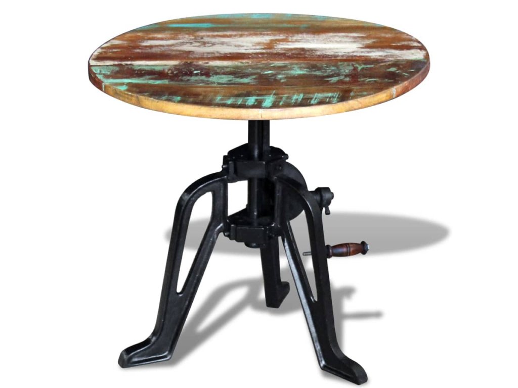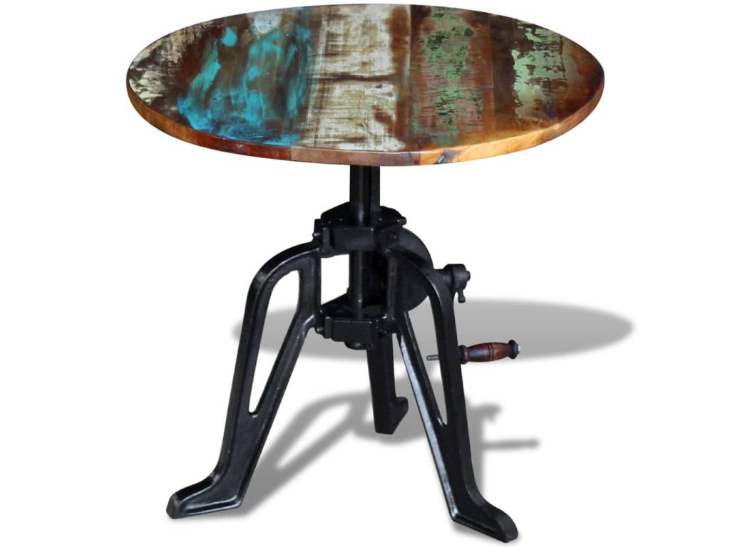 Tento drevený retro stolík v industriálnom štýle s nastaviteľnou výškou od 42 do 63 cm predstavuje štýlový doplnok do interiéru. Môžete ho využívať aj ako konferenčný stolík, stolík ku gauču, stolík do obývačky či odkladací stolík. Nábytok má pevnú a robustnú liatinovú základňu.