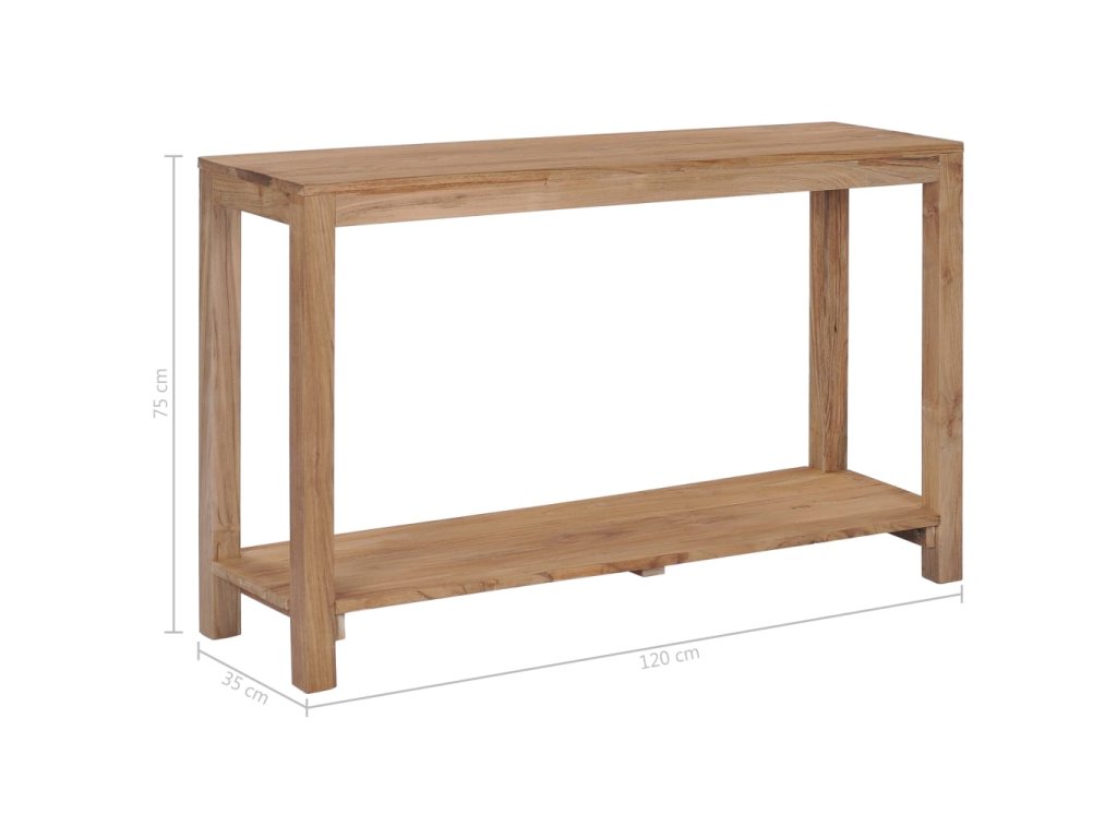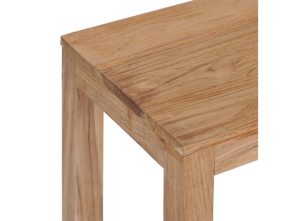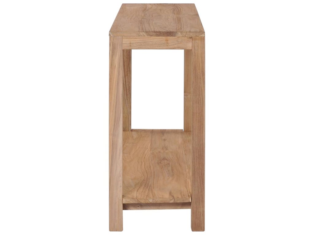 Stolík je ručne vyrobený z masívneho teakového dreva. Vďaka remeselnému spracovaniu a krásnej textúre použitého materiálu sa jednotlivé výrobky od seba líšia a každý z nich je svojim spôsobom jedinečný. Pevné drevené nohy zabezpečujú stabilnú konštrukciu. Integrovaná polica udržiava váš obytný priestor uprataný.