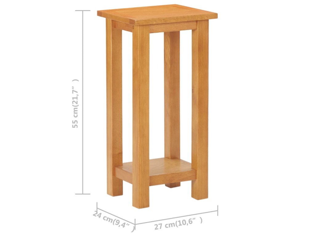 Koncový stolík s poličkou je odborne vyhotovený z trvácneho dubového masívu a MDF, a je skutočne trvácny a funkčný. Vďaka svojmu kompaktnému dizajnu nezaberie veľa miesta a je ideálny do menších miestností. Pevná vrchná doska je ako stvorená na odkladanie jedál a nápojov, aby ste ich mali vždy poruke, či na vystavenie rôznych dekoračných predmetov, ako napríklad rámikov s fotkami.