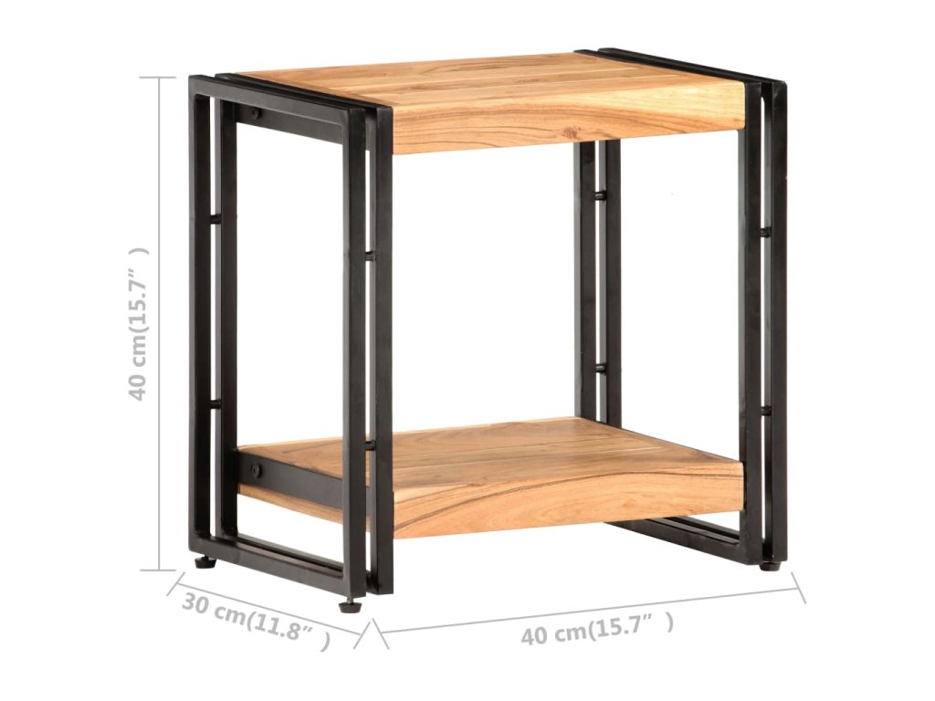 Konferenčný stolík je vyrobený zo surového akáciového masívu, takže je skutočne stabilný a trvácny. Vďaka remeselnému spracovaniu a krásnej textúre dreva je každý kus nábytku jedinečný a trochu odlišný od ostatných. Pevná vrchná doska sa dá použiť na vystavenie predmetov. Dostatočný úložný priestor poskytuje aj polička. Tento bočný stolík môže slúžiť aj ako nočný stolík.