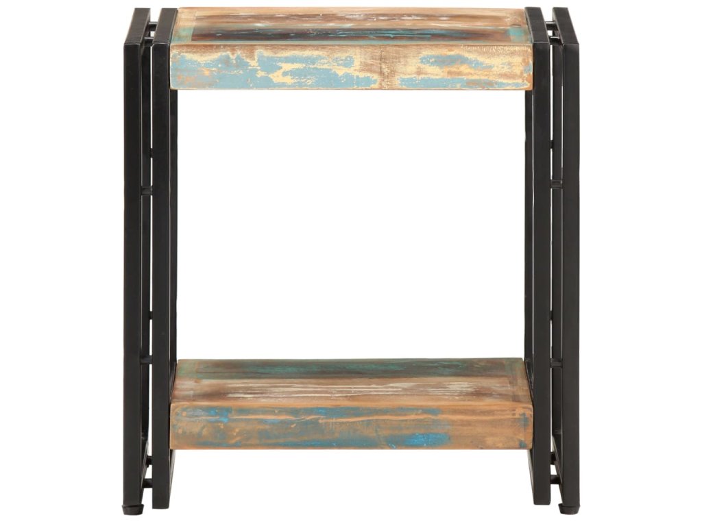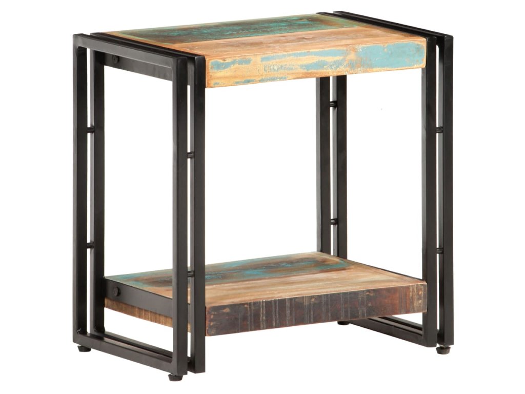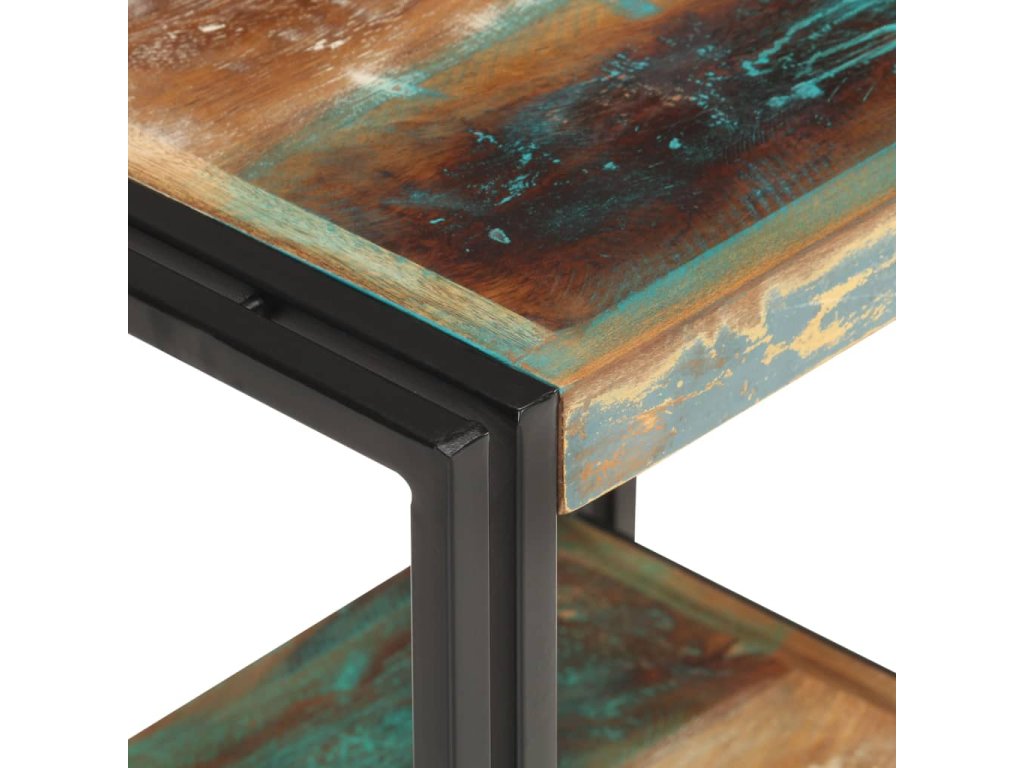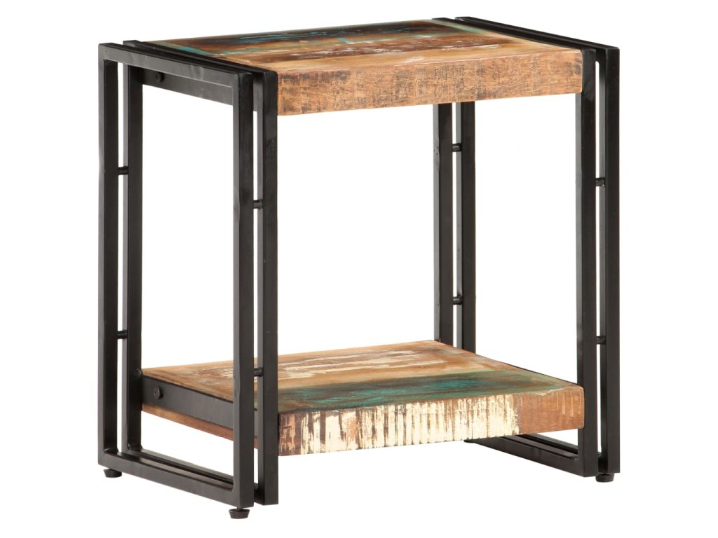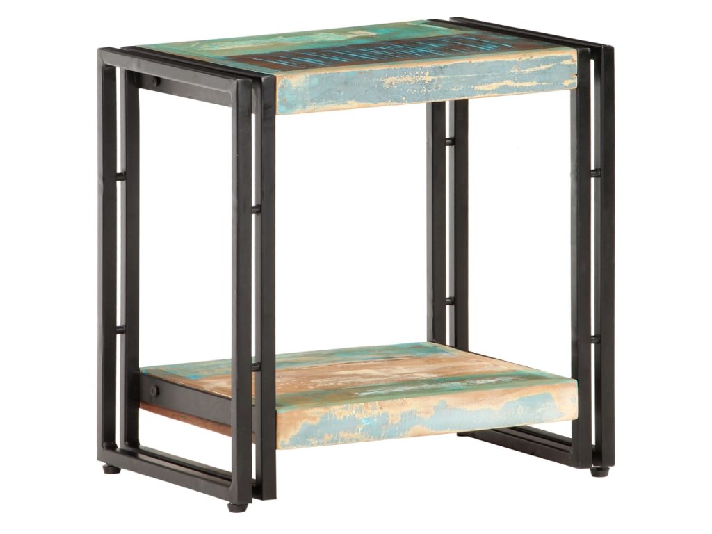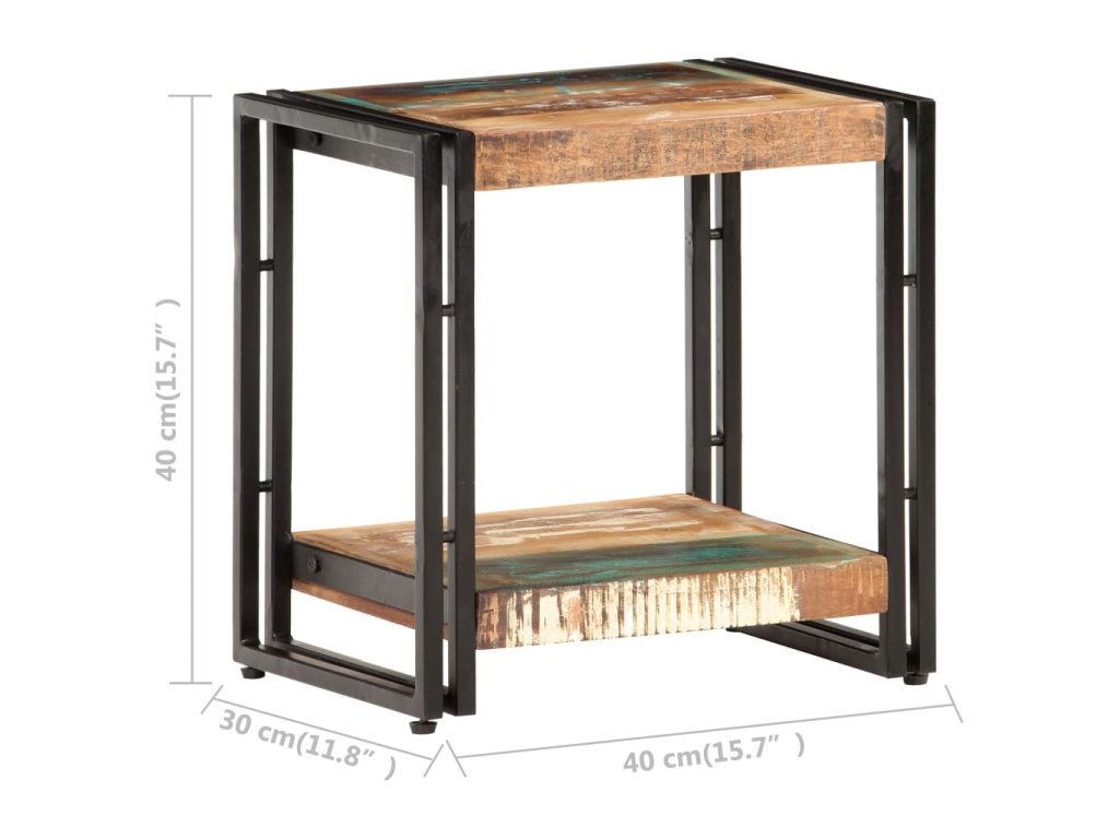 Gaučový stolík je vyrobený z MDF a masívneho recyklovaného dreva, ktoré pochádza z trámov, podláh a nosníkov starých zbúraných stavieb. Okrem toho môže pozostávať z rôznych druhov dreva, ako je teakové drevo, tvrdé drevo, tropické drevo, mangovníkové drevo atď. To znamená, že recyklované drevo si zachováva vlastnosti týchto rôznych druhov drevín. Recyklované drevo už je staré, zvetrané a vysušené. Preto sa nezmršťuje ani neohýba. Pevná vrchná doska sa dá použiť na uloženie dekoratívnych predmetov. Polica tiež poskytuje dostatok priestoru. Stolík sa dá použiť aj v spálni ako nočný stolík.
