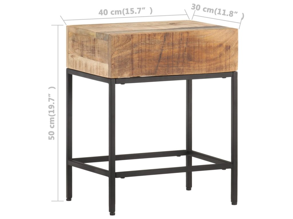 - Materiál: Surový mangový masív s prírodnou povrchovou úpravou, oceľ s práškovou povrchovou úpravou