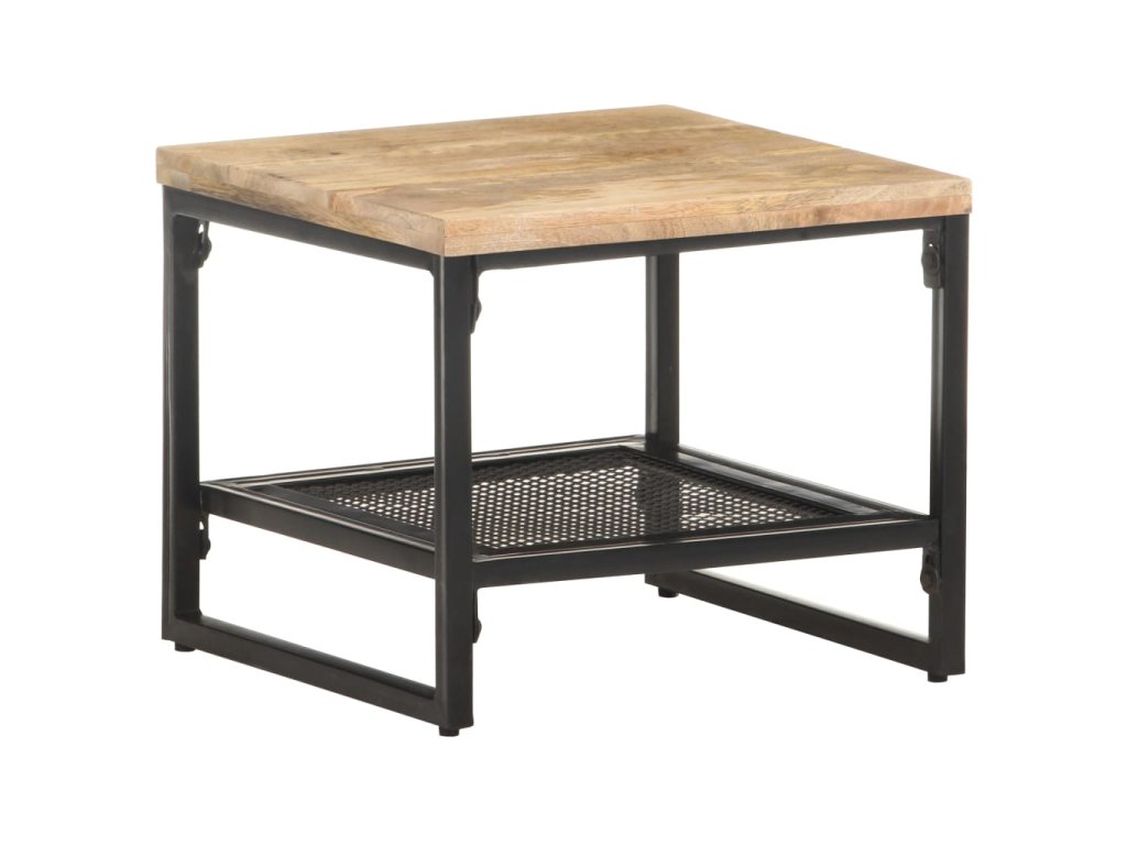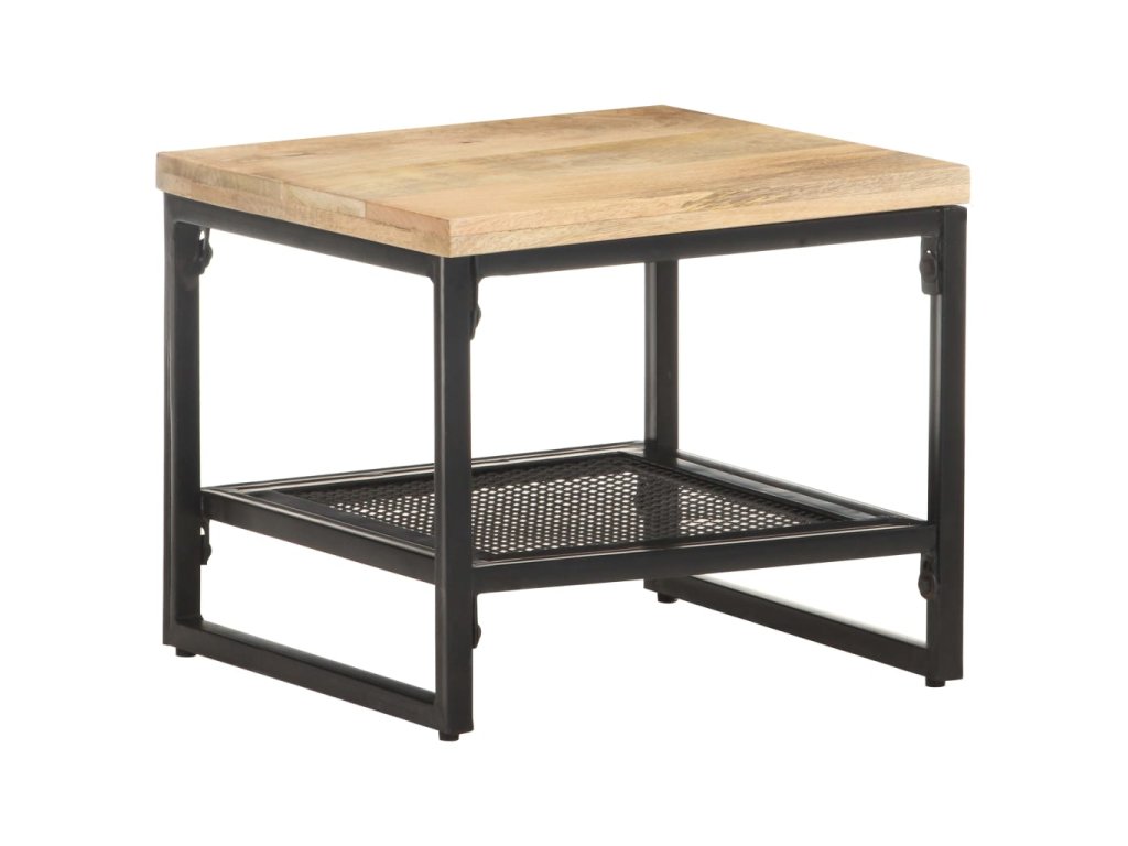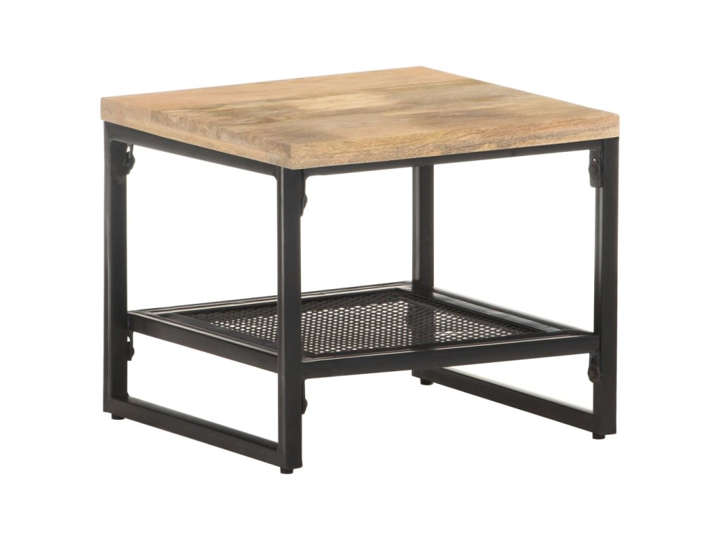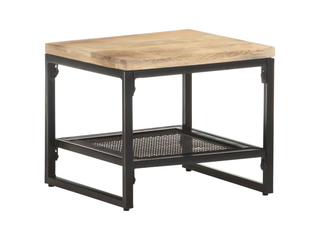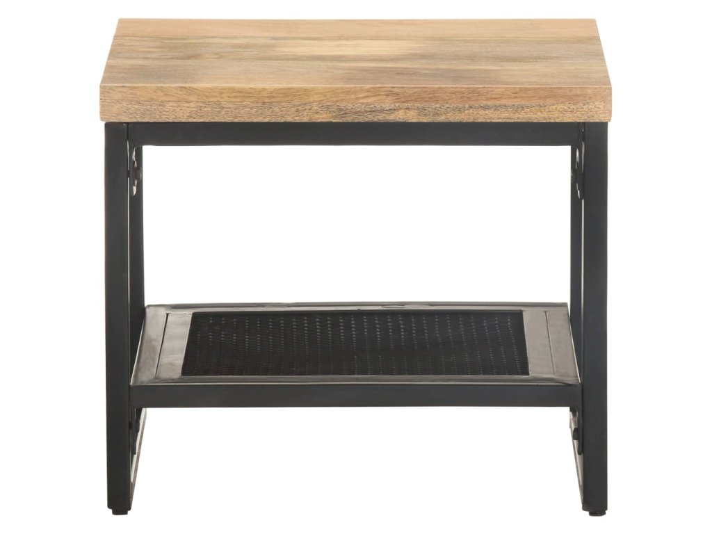 Mangový masív je drevo tropického listnatého stromu, ktoré je dostatočne pevné na to, aby unieslo aj značnú váhu, no zároveň odoláva každodennému opotrebovaniu. Vďaka vynikajúcemu remeselnému opracovaniu a krásnej textúre dreva je každý stolík ku gauču trochu odlišný od ostatných. Železné nohy s práškovou povrchovou úpravou stolíku dodávajú potrebnú pevnosť a stabilitu. 1 polička poskytuje praktický úložný priestor na rôzne predmety.