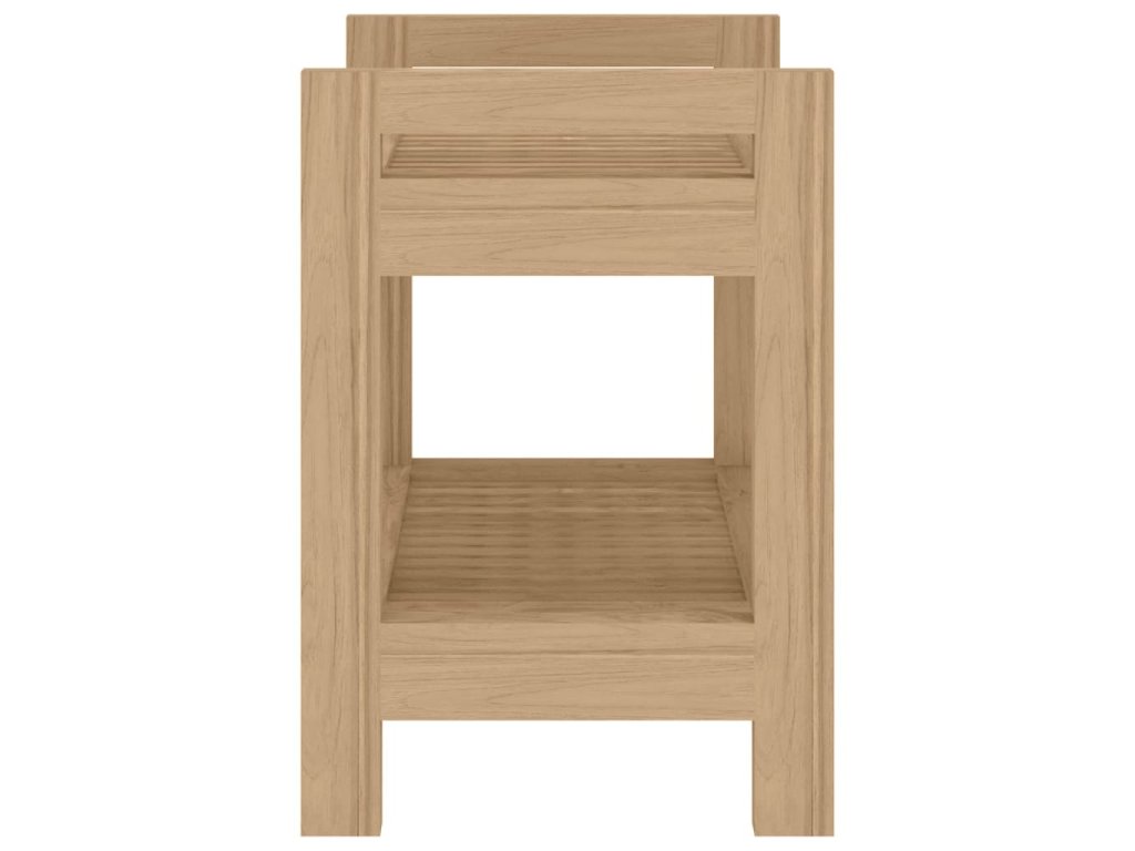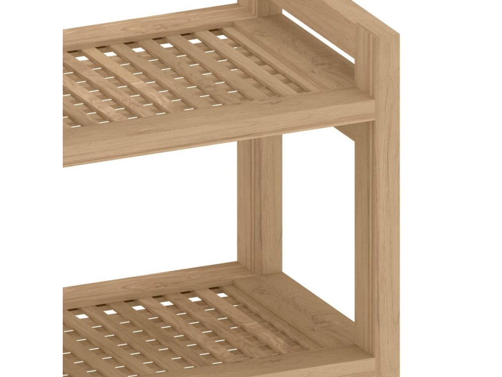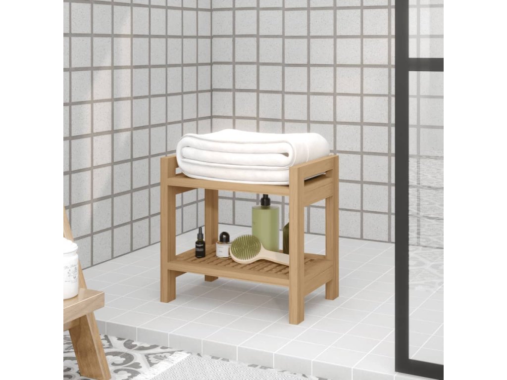 - Úložná polička: Tíkový príručný stolík má nosnosť až 10 kg, a tak je ako stvorený na odkladanie rôznych toaletných potrieb, ako sú osušky, mydlá, šampóny, krémy, sprchové gély či vonné sviečky, ktoré tak budete mať hneď poruke. Stolík nie je v žiadnom prípade vhodný na sedenie. Stolík nie je v žiadnom prípade vhodný na sedenie.
