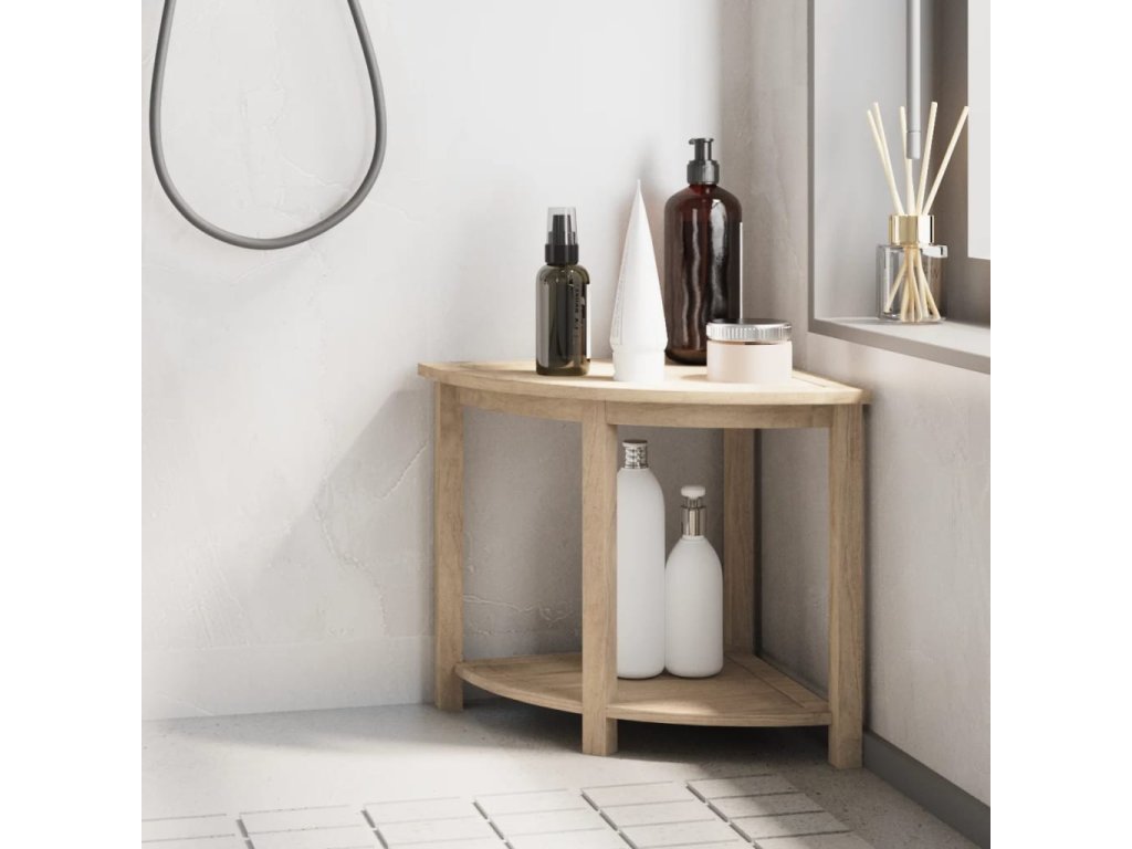 Tento drevený príručný stolík do kúpeľne vám poskytne ideálne miesto na odkladanie uterákov a toaletných potrieb v sprche.