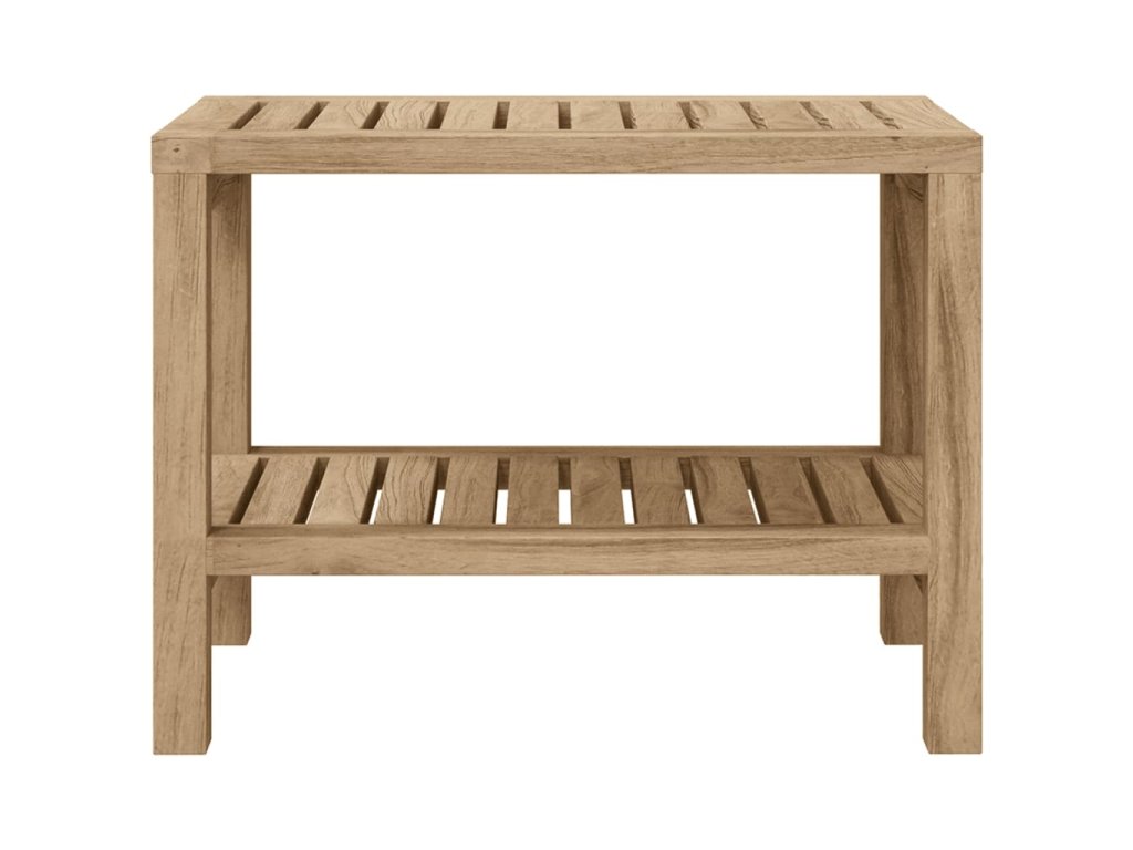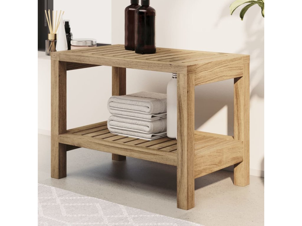 - Úložná polička: Tíkový príručný stolík má nosnosť až 10 kg, a tak je ako stvorený na odkladanie rôznych toaletných potrieb, ako sú osušky, mydlá, šampóny, krémy, sprchové gély či vonné sviečky, ktoré tak budete mať hneď poruke. Stolík nie je v žiadnom prípade vhodný na sedenie. Stolík nie je v žiadnom prípade vhodný na sedenie.