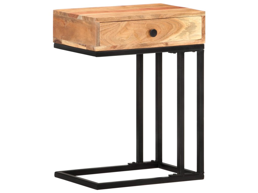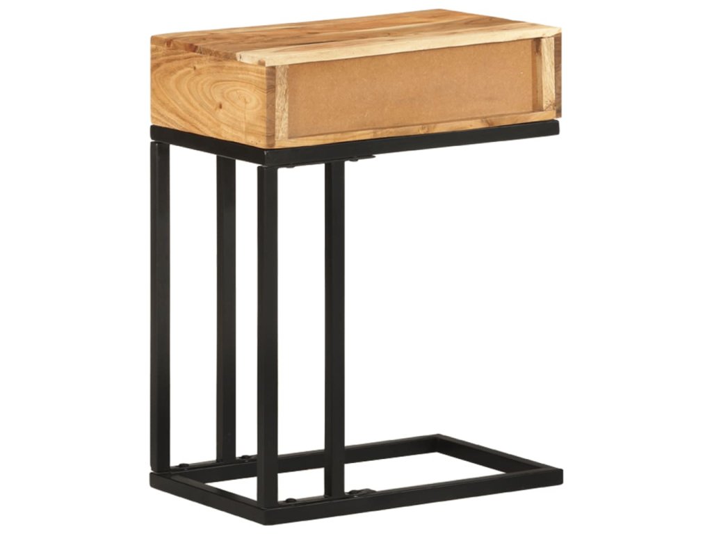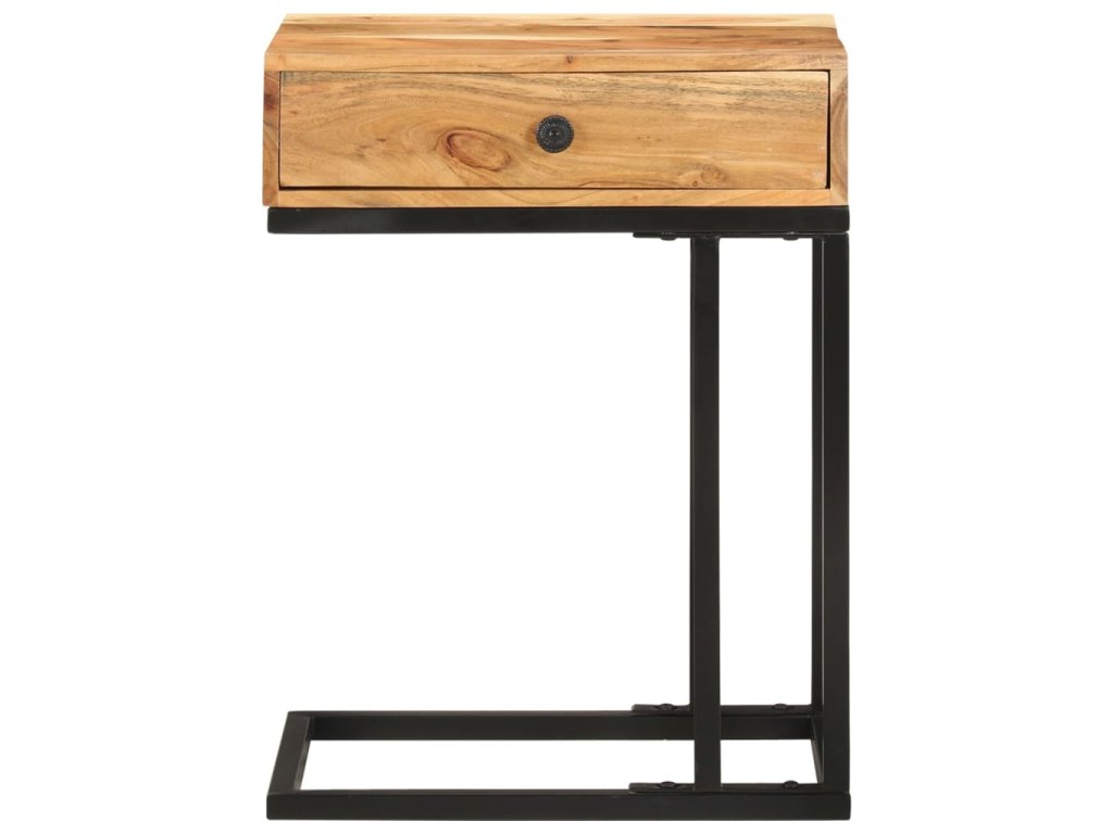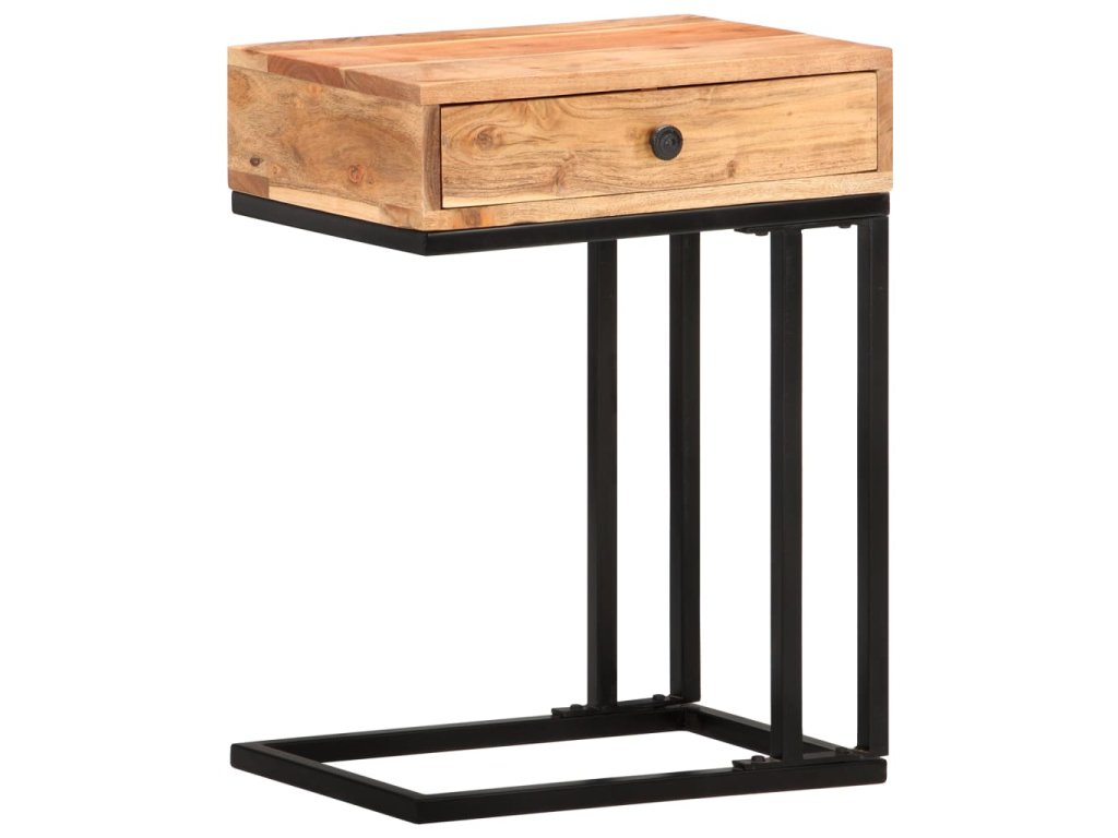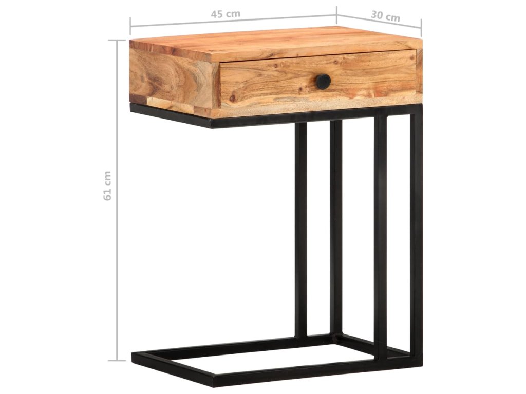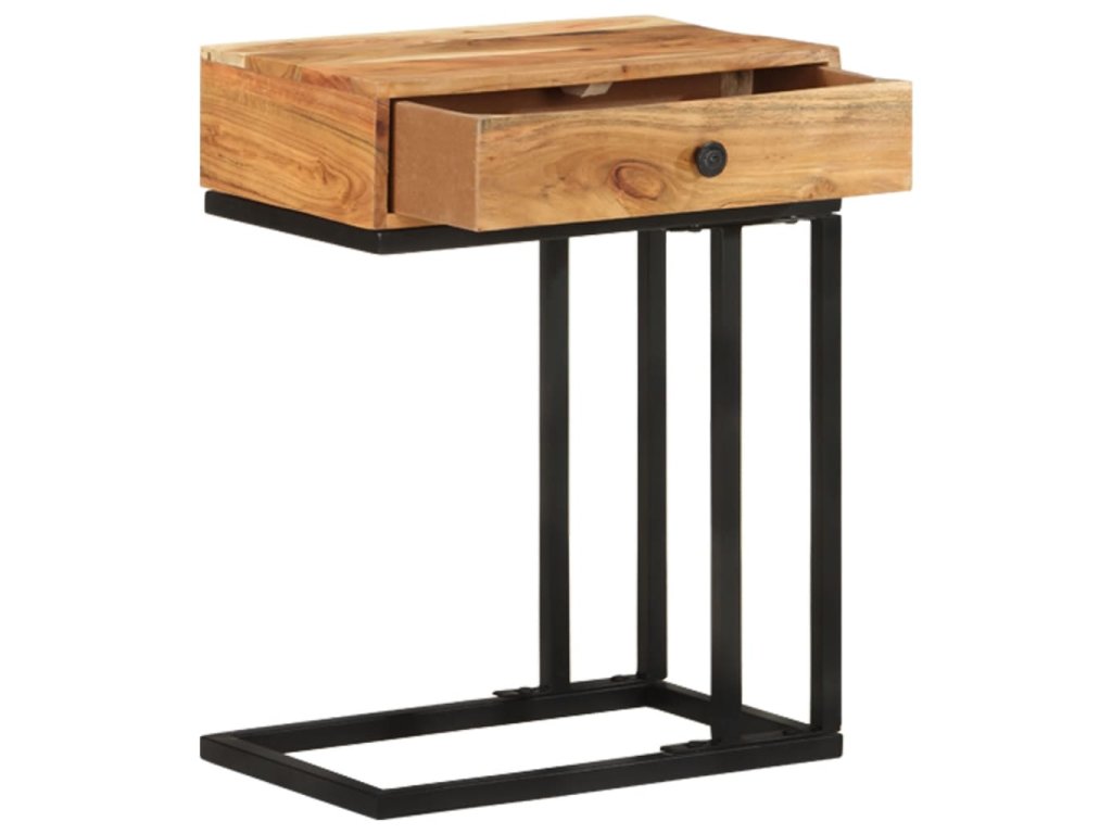 Akáciový masív je drevo tropického listnatého stromu s krásnou textúrou, ktoré vydrží dlhé roky. Stolík podopiera oceľový rám s práškovou povrchovou úpravou, vďaka čomu je stabilný a pevný. 1 zásuvka poskytuje praktický úložný priestor na odkladanie drobností.