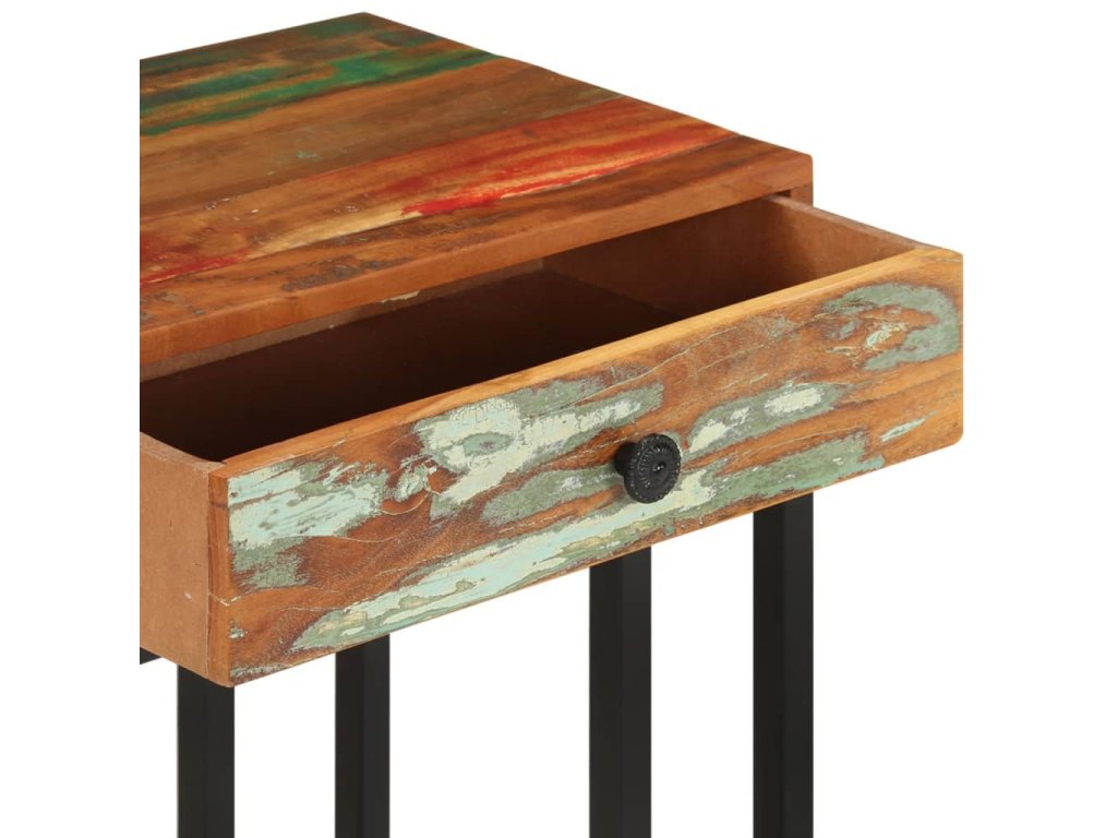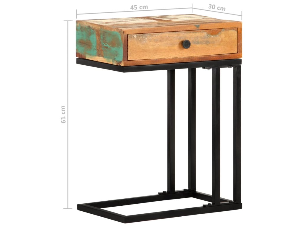 Stolík ku gauču je vyrobený z recyklovaného masívu, ktorý má podobné vlastnosti ako napríklad borovicové, tíkové, dubové, mangové, akáciové drevo a podobne. Recyklované drevo je staré, zvetrané a usušené, a preto sa nezmršťuje ani neohýba. Vďaka známkam opotrebovania a krásnej textúre dreva je každý kus nábytku trochu odlišný od ostatných. 1 zásuvka poskytuje praktický úložný priestor na odkladanie drobností.