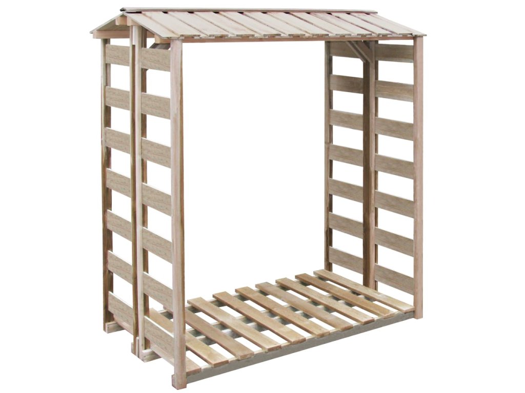 Prístrešok na palivové drevo je vyrobený z vysokokvalitného tlakom impregnovaného borovicového dreva, vďaka čomu je pevný, trvácny a odolný voči hnilobe. Prístrešok má šikmú strechu, ktorá drevo ochráni pred dažďom a snehom, jeho steny sú tvorené latkami, ktoré umožňujú dostatočné prúdenie vzduchu a vďaka vyvýšenej lamelovej podlahe bude drevo dobre vetrané a nenavlhne.