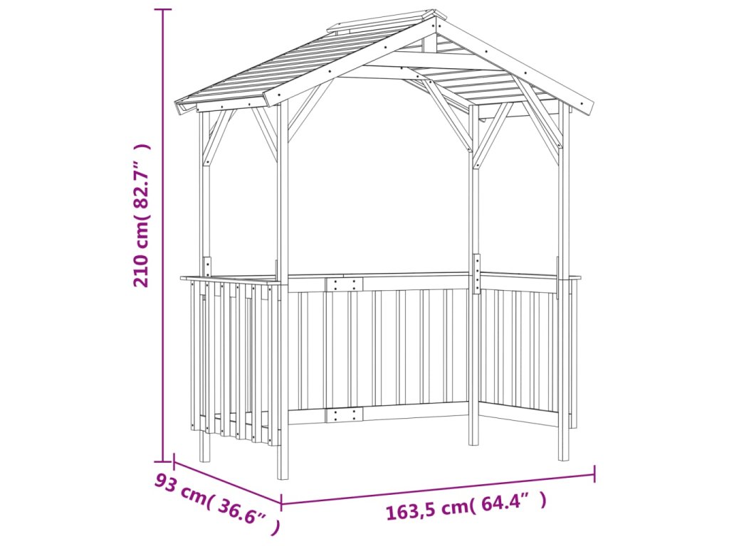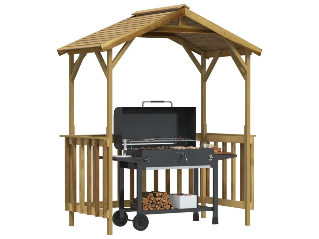 Užite si grilovanie vonku pod týmto prístreškom z impregnovaného borovicového dreva! Je tiež ideálny na uskladnenie rôznych záhradných predmetov, ako je záhradné náradie, záhradný nábytok alebo akákoľvek iná položka, ktorú chcete uložiť vonku.