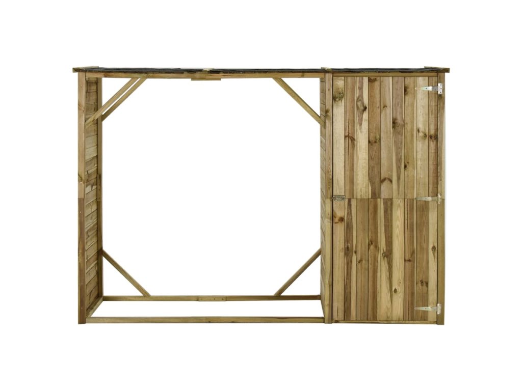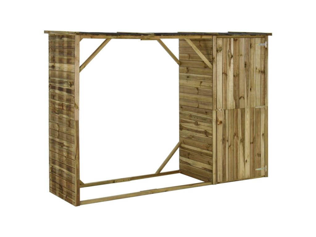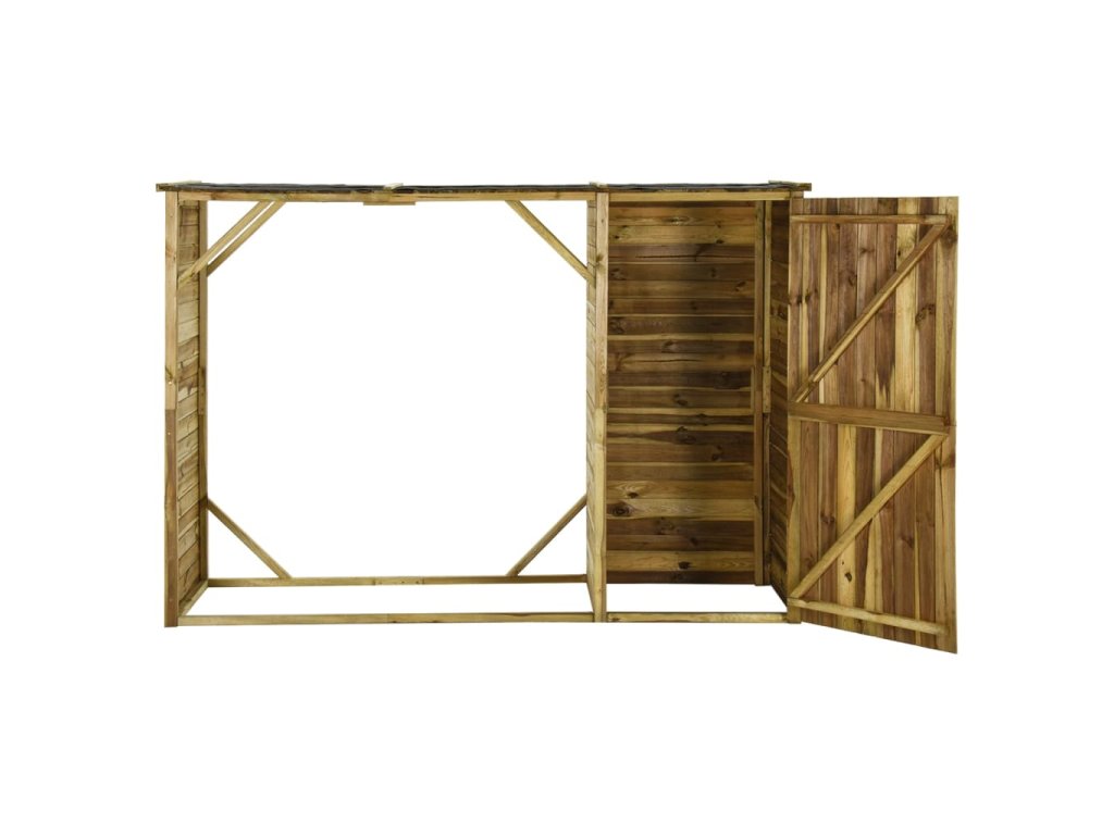 Z nášho prístrešku na drevo/náradie 2 v 1 vyžaruje rustikálny šarm a stane sa praktickým doplnkom na terasu, záhradu či do dvora. Záhradná kôlňa pozostáva z regálu na drevené polená a veľkej skrinky, a tak poskytuje množstvo priestoru na skladovanie palivového a rovnaného dreva, ako aj náradia či záhradného vybavenia a podobne.