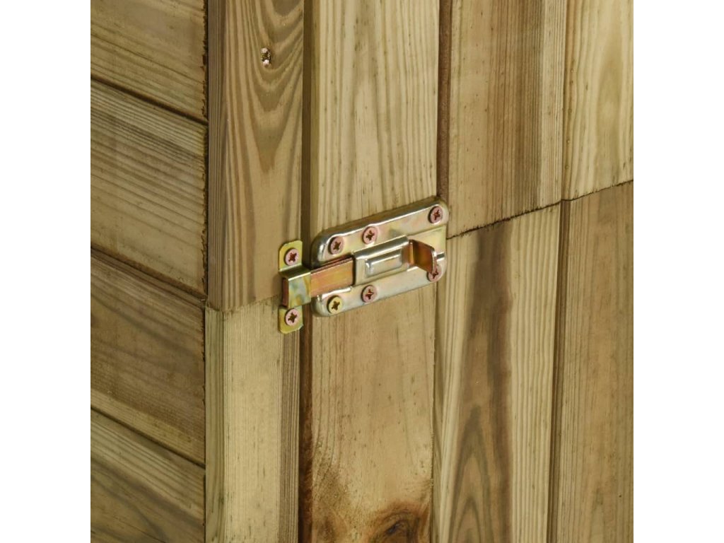 Táto vonkajšia kôlňa je vyrobená z borovicového dreva. Impregnované borovicové drevo je trvácne a odolné voči poveternostným vplyvom aj hnilobe. Strecha je navyše pokrytá vodoodolnou dechtovou lepenkou.