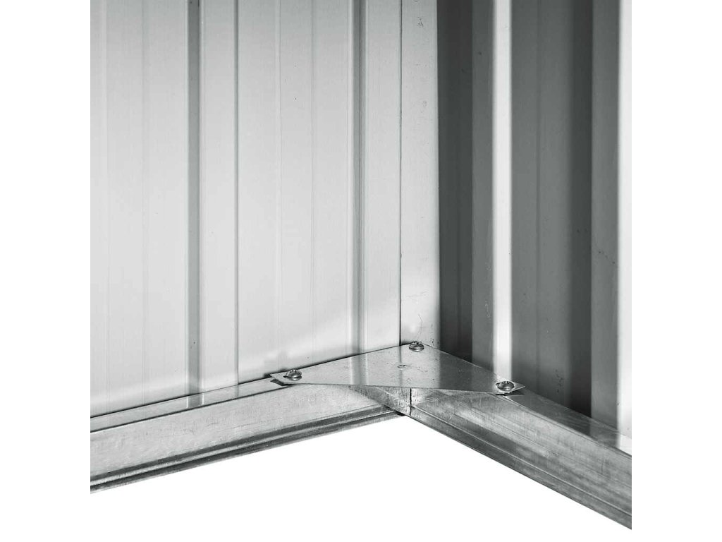 - Stabilný a odolný: Vďaka pozinkovanej oceľovej konštrukcii je skladovací domček pevný a stabilný.