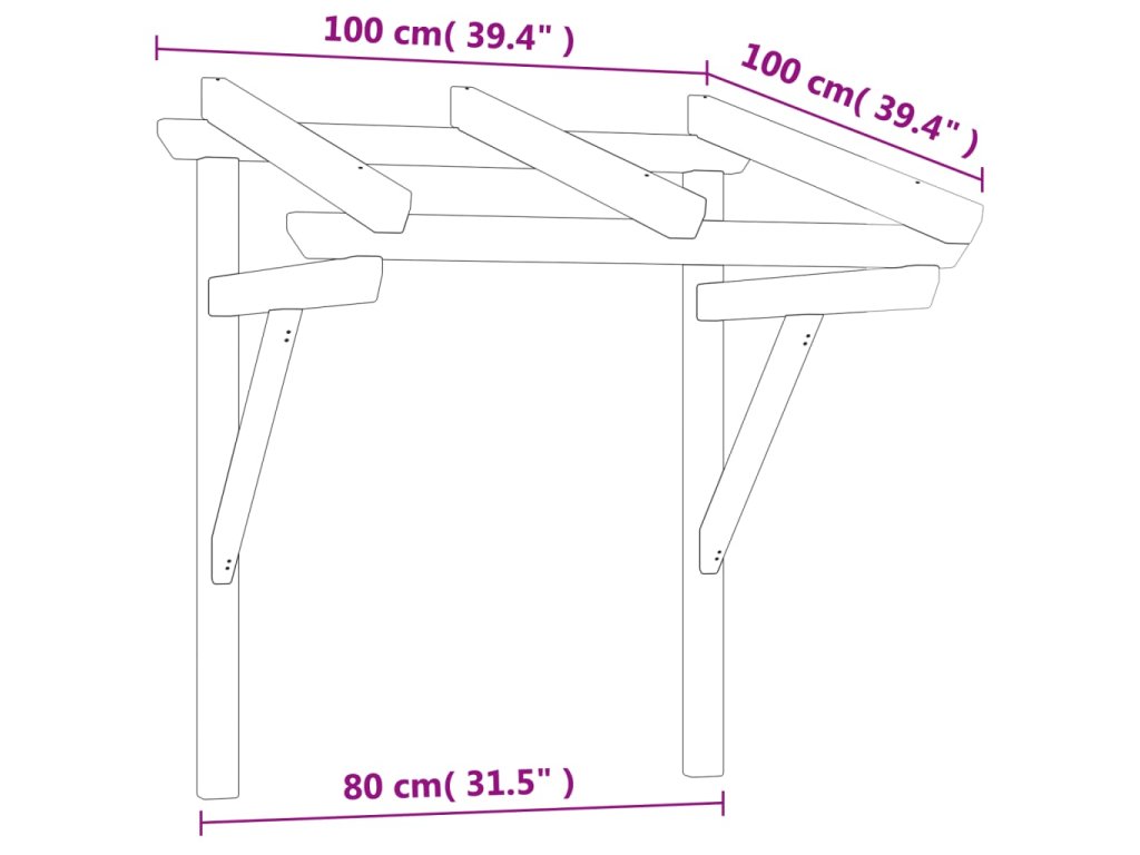 Tento prístrešok na predné dvere sa dá inštalovať nad dvere, okná a podobne. Je vyrobený zo zeleného impregnovaného masívneho borovicového dreva a je pevný, trvácny a odolný voči korózii.