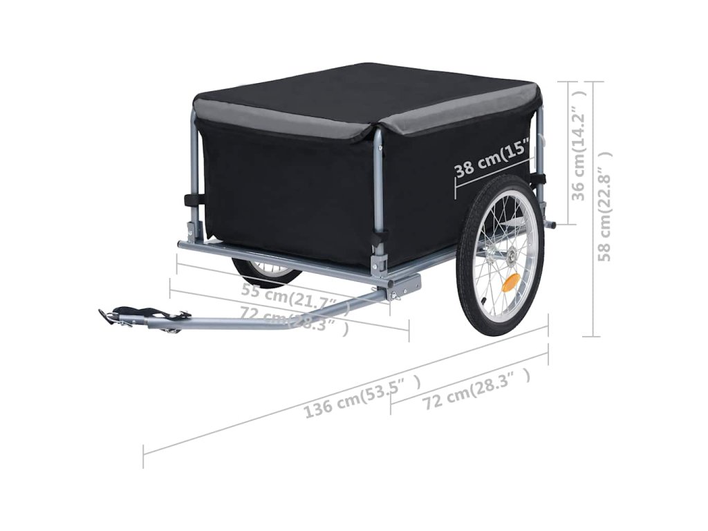 Rám tohto nákladného prívesu za bicykel je vyrobený z ocele, vďaka čomu je veľmi odolný a odolný. Vďaka 100% polyesterovej tkanine je priestor s krytom odolný voči vode. Je vybavený guľovou spojkou pre rýchle pripevnenie k bicyklu. Vďaka sklopnému oju a rýchloupínacím pneumatikám tento príves pri skladovaní alebo preprave skutočne šetrí priestor. Farebné reflektory s vysokou viditeľnosťou sú navrhnuté pre zvýšenú bezpečnosť. Nákladný priestor je ľahko odnímateľný vďaka upínaniu na suchý zips.