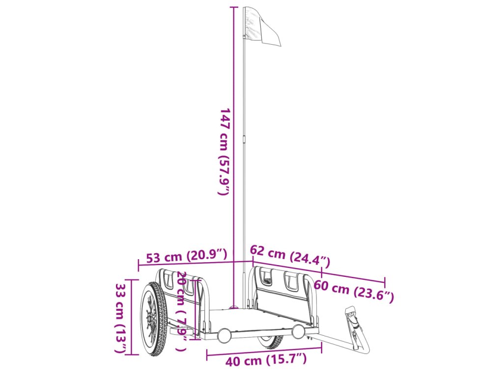 - Bezpečná jazda: Nákladný príves na bicykel má dve veľké kolesá, ktoré umožňujú plynulé a bezpečné cestovanie na rôznych miestach, odrazky na vonkajšej strane poskytujú viditeľnosť v tme a vlajka môže zvýšiť bezpečnosť premávky.