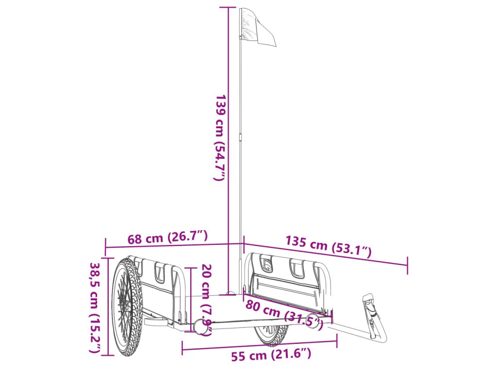 - Robustná konštrukcia: Tento príves na bicykel má pevnú konštrukciu, ktorá je vyrobená z práškovaného lakovaného železa. Železo je pevný a tvrdý materiál. Je to solídny favorit v priemyselnej a nábytkárskej výrobe. Práškovaný náter na povrchu železa vytvára ochrannú vrstvu proti hrdzi, korózii a opotrebovaniu.