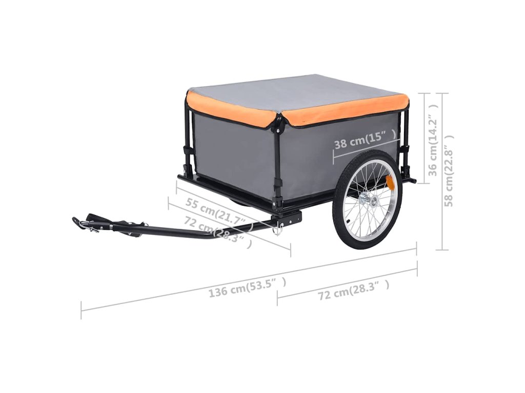 Rám tohto nákladného prívesu za bicykel je vyrobený z ocele, vďaka čomu je veľmi odolný a odolný. Vďaka 100% polyesterovej tkanine je priestor s krytom odolný voči vode. Je vybavený guľovou spojkou pre rýchle pripevnenie k bicyklu. Vďaka sklopnému oju a rýchloupínacím pneumatikám tento príves pri skladovaní alebo preprave skutočne šetrí priestor. Farebné reflektory s vysokou viditeľnosťou sú navrhnuté pre zvýšenú bezpečnosť. Nákladný priestor je ľahko odnímateľný vďaka upínaniu na suchý zips.