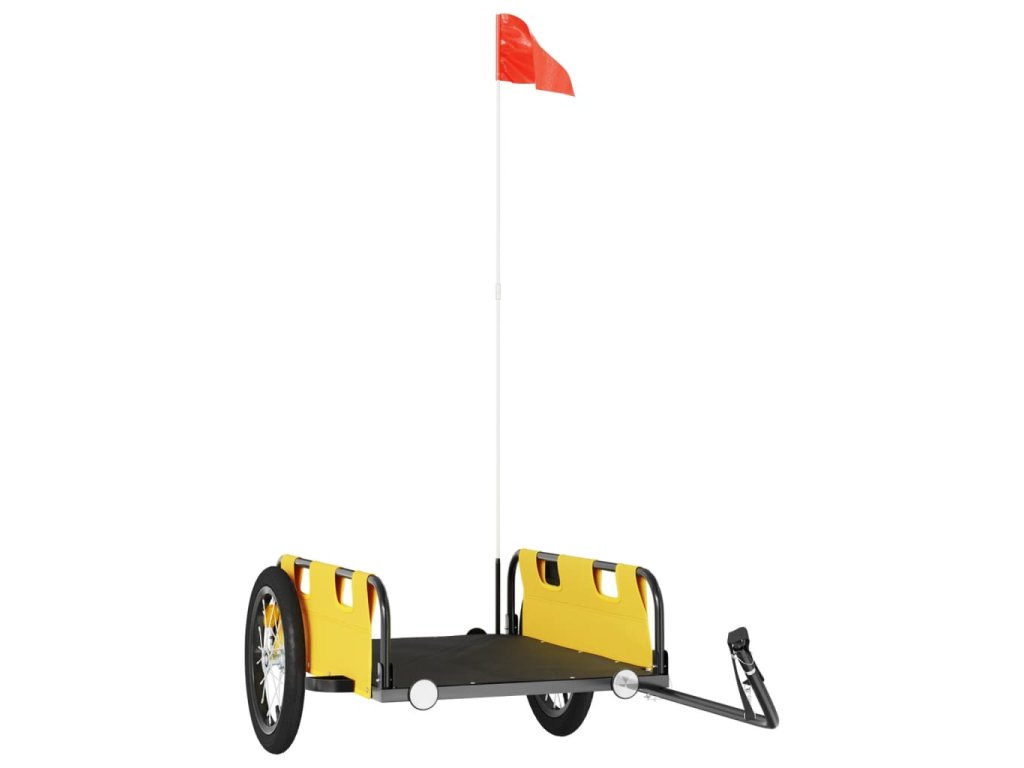 - Bezpečná jazda: Nákladný príves na bicykel má dve veľké kolesá, ktoré umožňujú plynulé a bezpečné cestovanie na rôznych miestach, odrazky na vonkajšej strane poskytujú viditeľnosť v tme a vlajka môže zvýšiť bezpečnosť premávky.