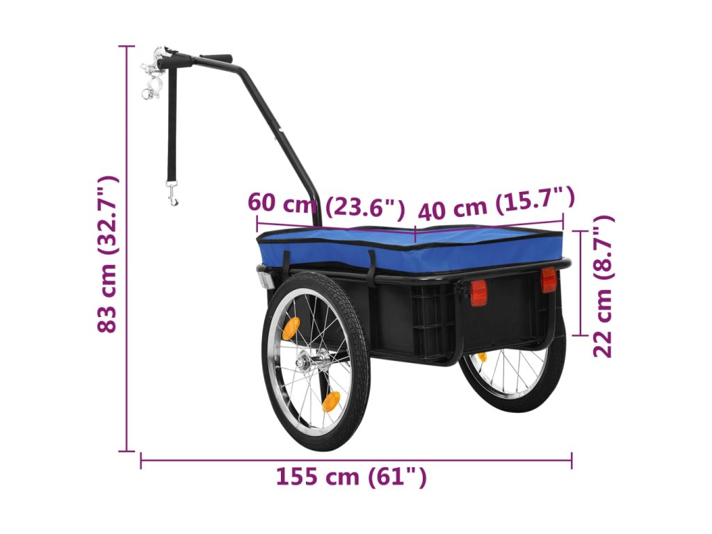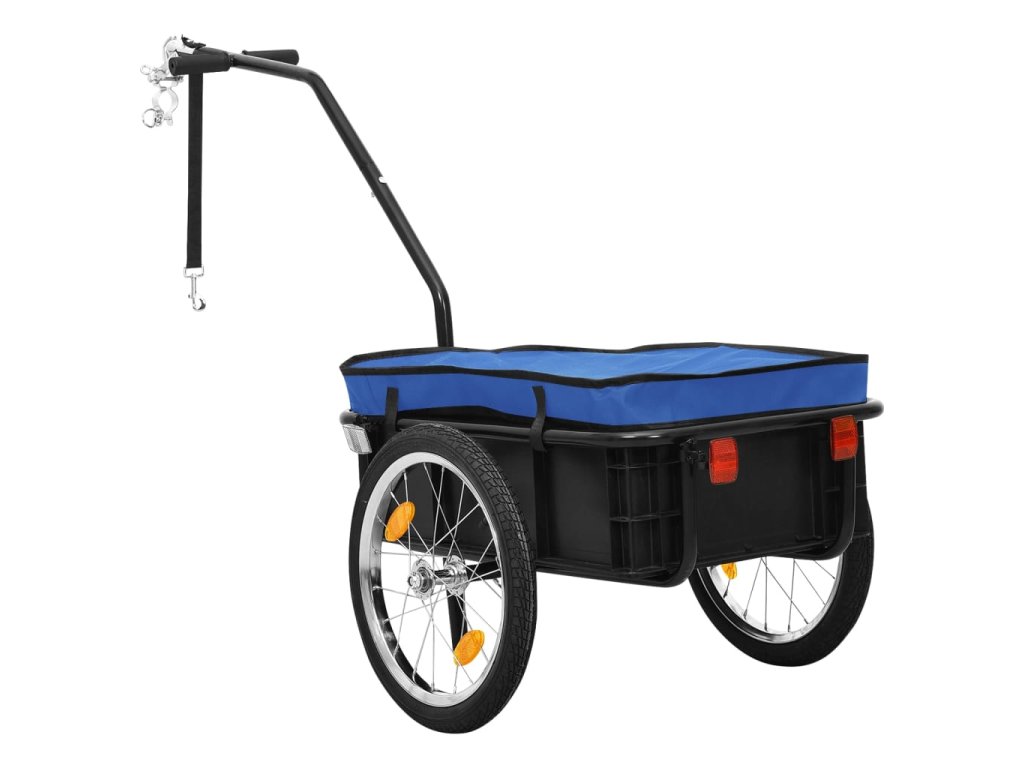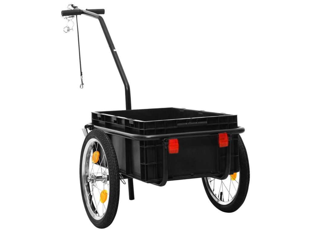 Vďaka konštrukcii silného oceľového rámu s odolnou plastovou prepravkou je tento nákladný vozík za bicykel/ručný vozík veľmi pevný a trvácny. Odnímateľný nylonový kryt je odolný voči vode a vplyvom počasia. Výrazné farebné odrazky zvýšia bezpečnosť počas jazdy.