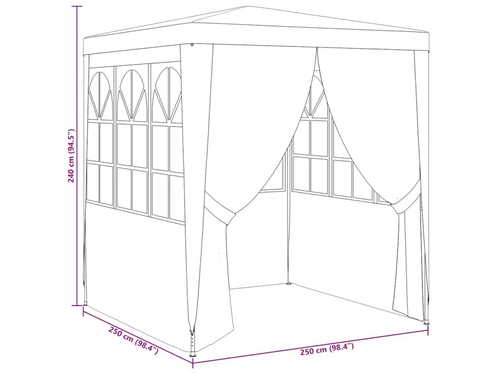 Záhradný stan je vyrobený z polyetylénového materiálu, ktorý je vodovzdorný a odolný voči UV žiareniu, a preto je naozaj vhodný do exteriéru. Rám je vyhotovený z ocele odolnej voči hrdzi, vďaka čomu je vonkajší prístrešok veľmi stabilný a trvácny. Párty stan má bočné panely, pričom na každom z nich sa nachádzajú dekoratívne okienka, a 1 panel s dvierkami na zips, ktorý umožňuje jednoduchý prístup dovnútra. Záhradný altánok sa jednoducho montuje.
