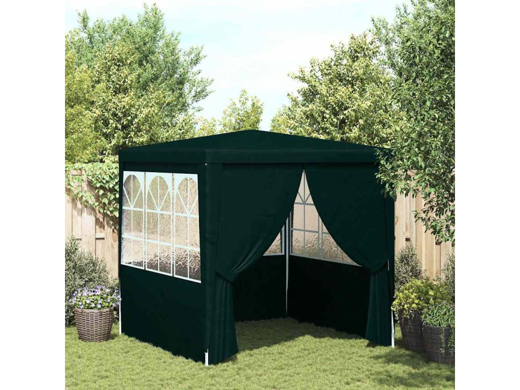 Záhradný stan je vyrobený z polyetylénového materiálu, ktorý je vodovzdorný a odolný voči UV žiareniu, a preto je naozaj vhodný do exteriéru. Rám je vyhotovený z ocele odolnej voči hrdzi, vďaka čomu je vonkajší prístrešok veľmi stabilný a trvácny. Párty stan má bočné panely, pričom na každom z nich sa nachádzajú dekoratívne okienka, a 1 panel s dvierkami na zips, ktorý umožňuje jednoduchý prístup dovnútra. Záhradný altánok sa jednoducho montuje.